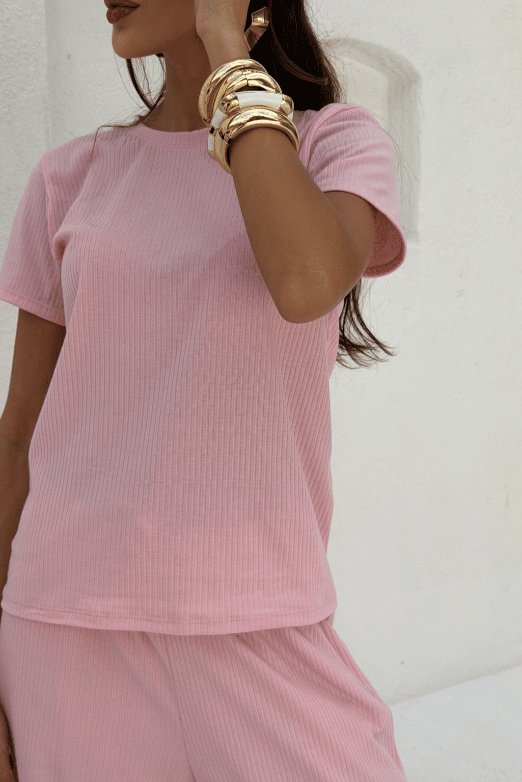 A blusa canelada Amanda é a escolha perfeita para quem busca conforto sem abrir mão da elegância. Confeccionada em malha canelada macia e leve, ele une estilo minimalista com um toque sofisticado. A blusa possui modelagem reta, mangas curtas e caimento soltinho, ideal para compor looks descomplicados e versáteis. A cor rosa candy destaca a textura canelada, criando uma proposta clean e moderna, perfeita para combinar com acessórios marcantes ou sobreposições elegantes.