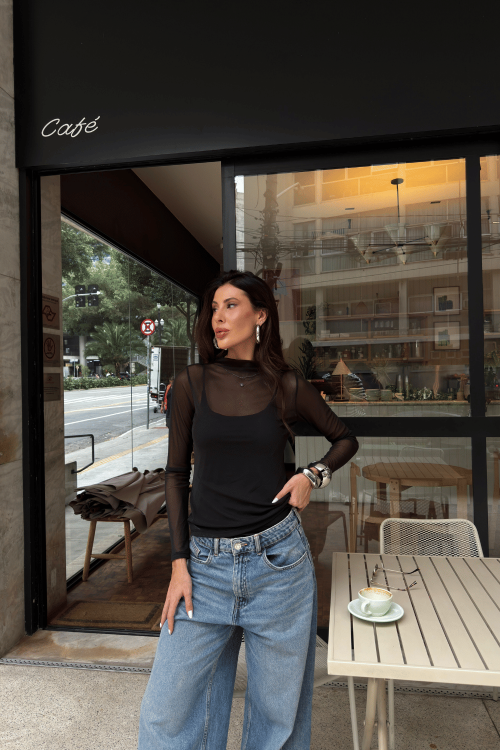 porque é versátil e cheia de atitude. o tule com elastano proporciona conforto e mobilidade, a transparência cria produções interessantes e a manga longa com gola média traz elegância imediata. é o tipo de peça que transforma qualquer look básico em uma produção moderna sem esforço.