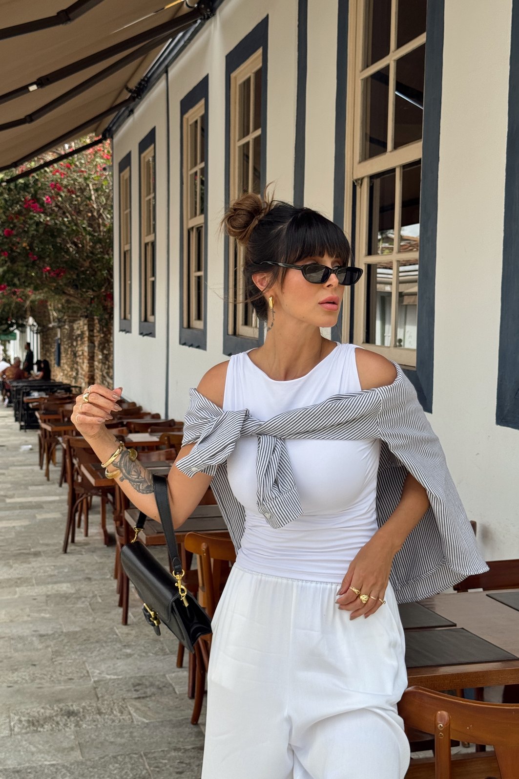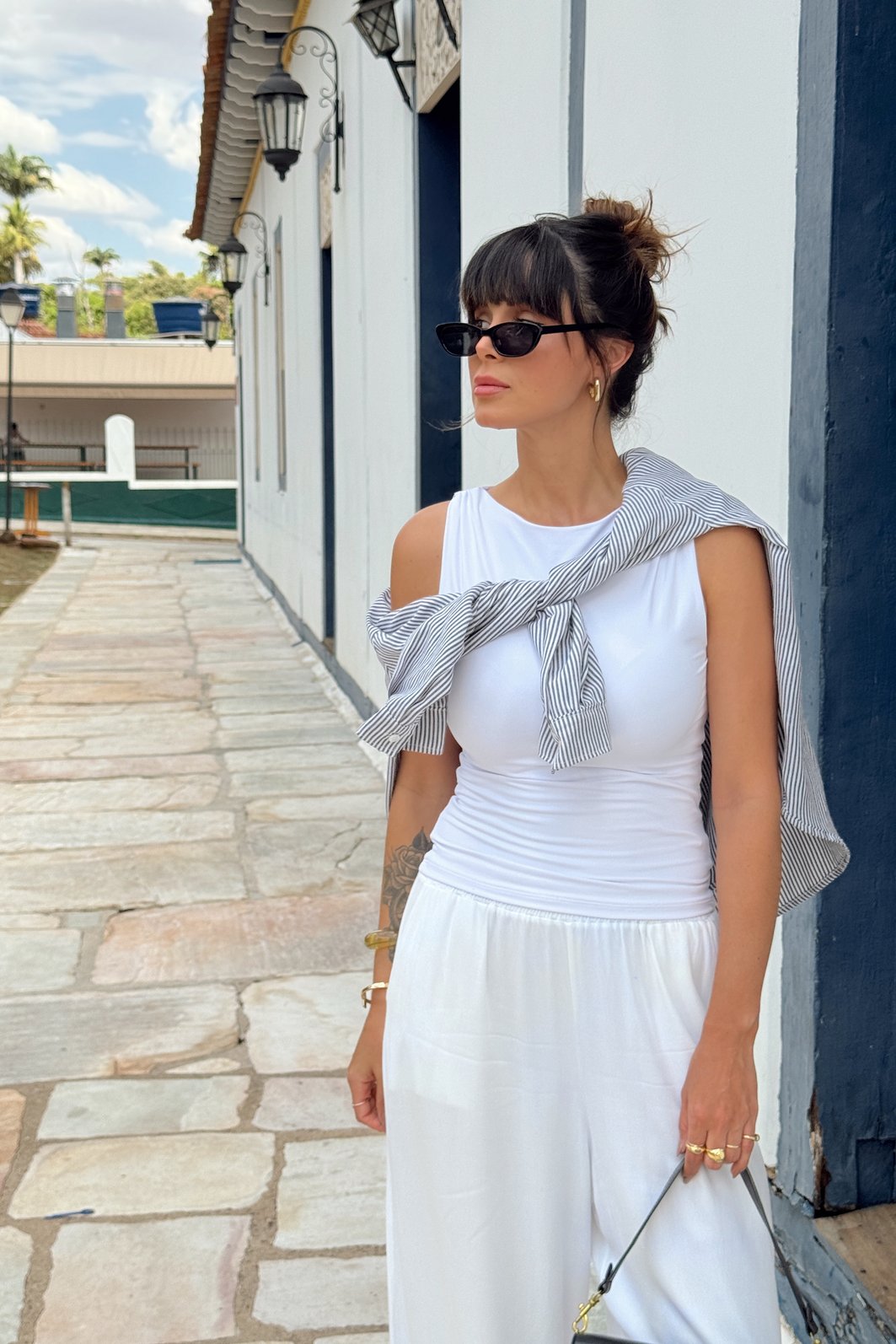 Essa blusa é aquele básico nada óbvio que transforma qualquer look! Confeccionada em poliamida, traz um toque macio e fresco na pele, proporcionando uma sensação agradável de liberdade e leveza, com caimento impecável e muita atemporalidade. O detalhe drapeado no ombro traz sofisticação na medida certa, enquanto a modelagem toda dupla na frente e nas costas oferece mais conforto, firmeza e segurança no uso. Uma peça versátil e moderna, perfeita para composições que vão do casual ao elegante.