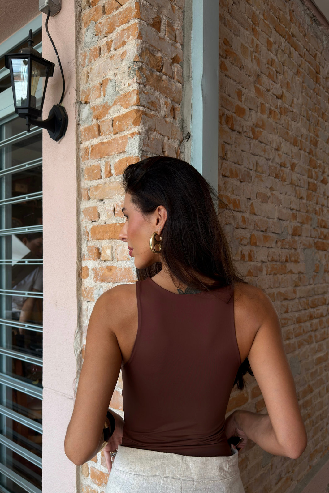 A modelagem é justa ao corpo, com caimento ajustado tipo second skin, ideal para quem quer um visual alinhado sem abrir mão do conforto. Funciona tanto para looks do dia a dia quanto para produções mais elegantes, combinando facilmente com calças de alfaiataria, jeans, saias ou pantalonas. É aquela peça base indispensável que entra no guarda-roupa e realmente é usada.