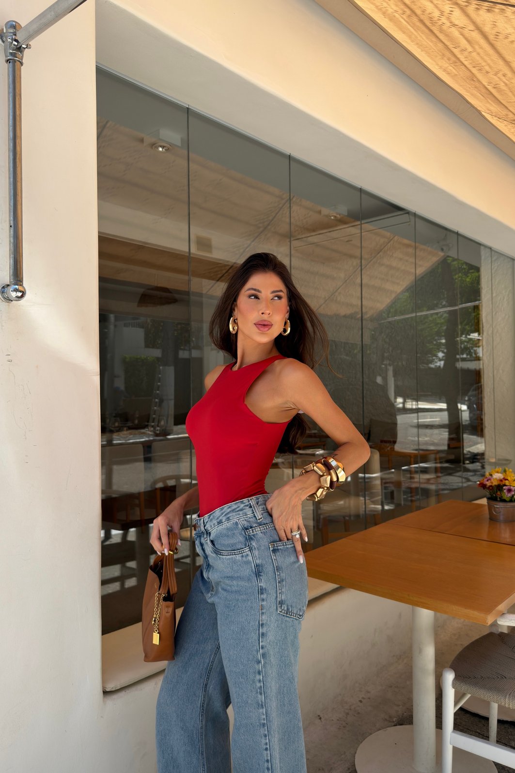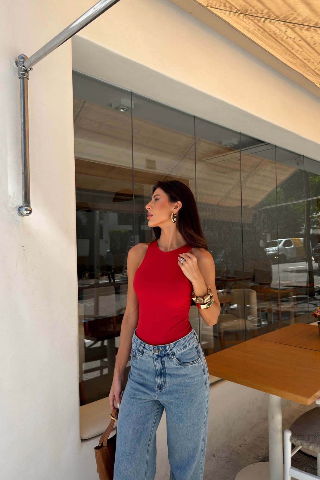 A modelagem é justa ao corpo, com caimento ajustado tipo second skin, ideal para quem quer um visual alinhado sem abrir mão do conforto. Funciona tanto para looks do dia a dia quanto para produções mais elegantes, combinando facilmente com calças de alfaiataria, jeans, saias ou pantalonas. É aquela peça base indispensável que entra no guarda-roupa e realmente é usada.