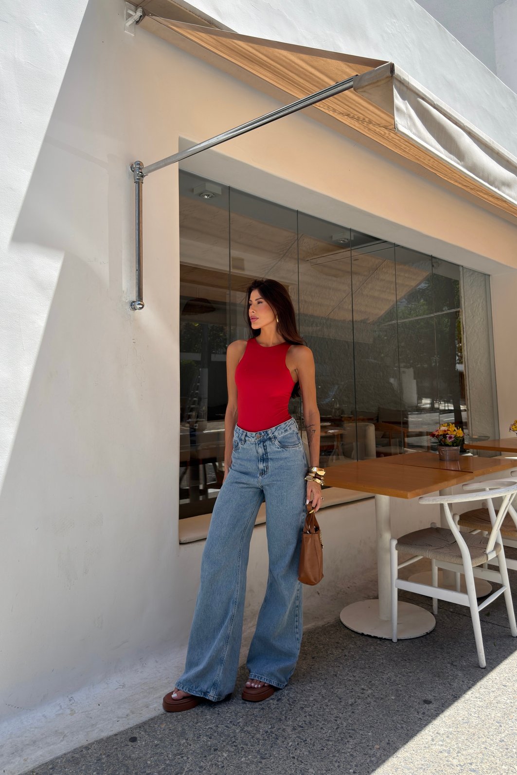 Porque é essencial, confortável e extremamente funcional. O Body Jeni tem tecido macio, elasticidade na medida certa e estrutura toda dupla, além do fechamento por botões de pressão, que facilita muito o uso no dia a dia. É o tipo de peça que substitui a blusa com muito mais segurança e deixa qualquer look mais interessante sem esforço.