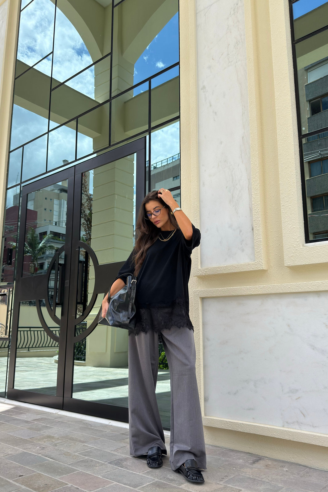 a modelagem é reta com caimento estruturado, ideal para quem quer elegância com conforto no dia a dia. funciona tanto para produções formais com blazer quanto para combinações mais modernas com t-shirt ou body ajustado. combina facilmente com salto, sandália ou até tênis para uma proposta hi low. é aquela peça versátil que realmente eleva o guarda-roupa.