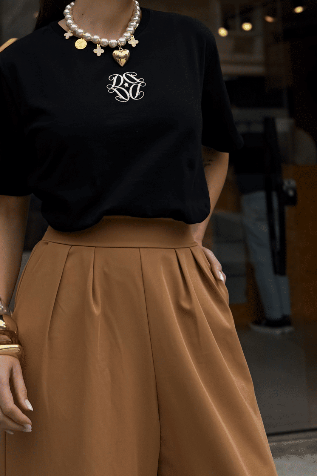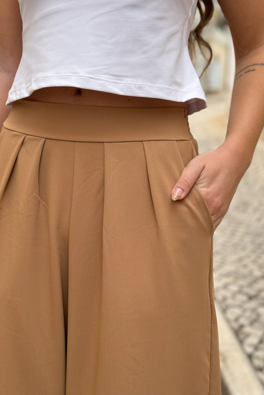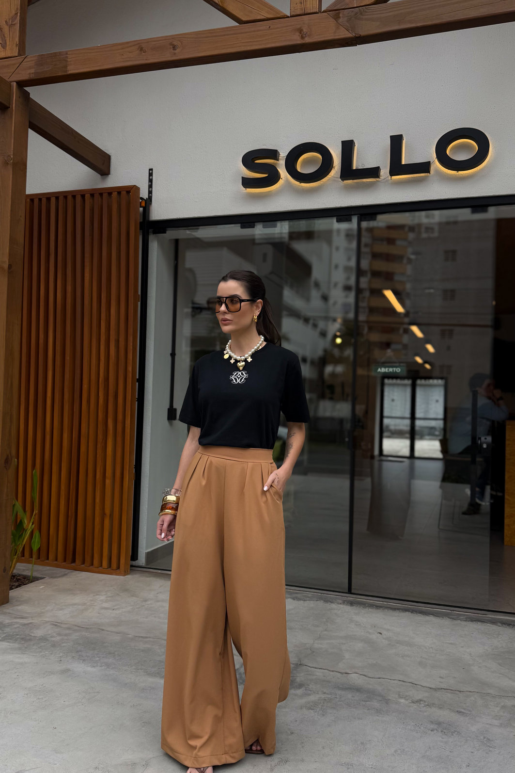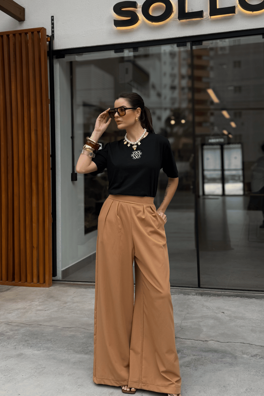 A Calça Sabine é puro charme com um toque de sofisticação descomplicada. Com modelagem wide leg fluida e pregas frontais que alongam a silhueta, ela une conforto e elegância em uma peça versátil. O tom marrom quente é perfeito para composições neutras ou coloridas, enquanto o caimento impecável garante aquele visual chic sem esforço, do dia de trabalho ao passeio no fim de semana.