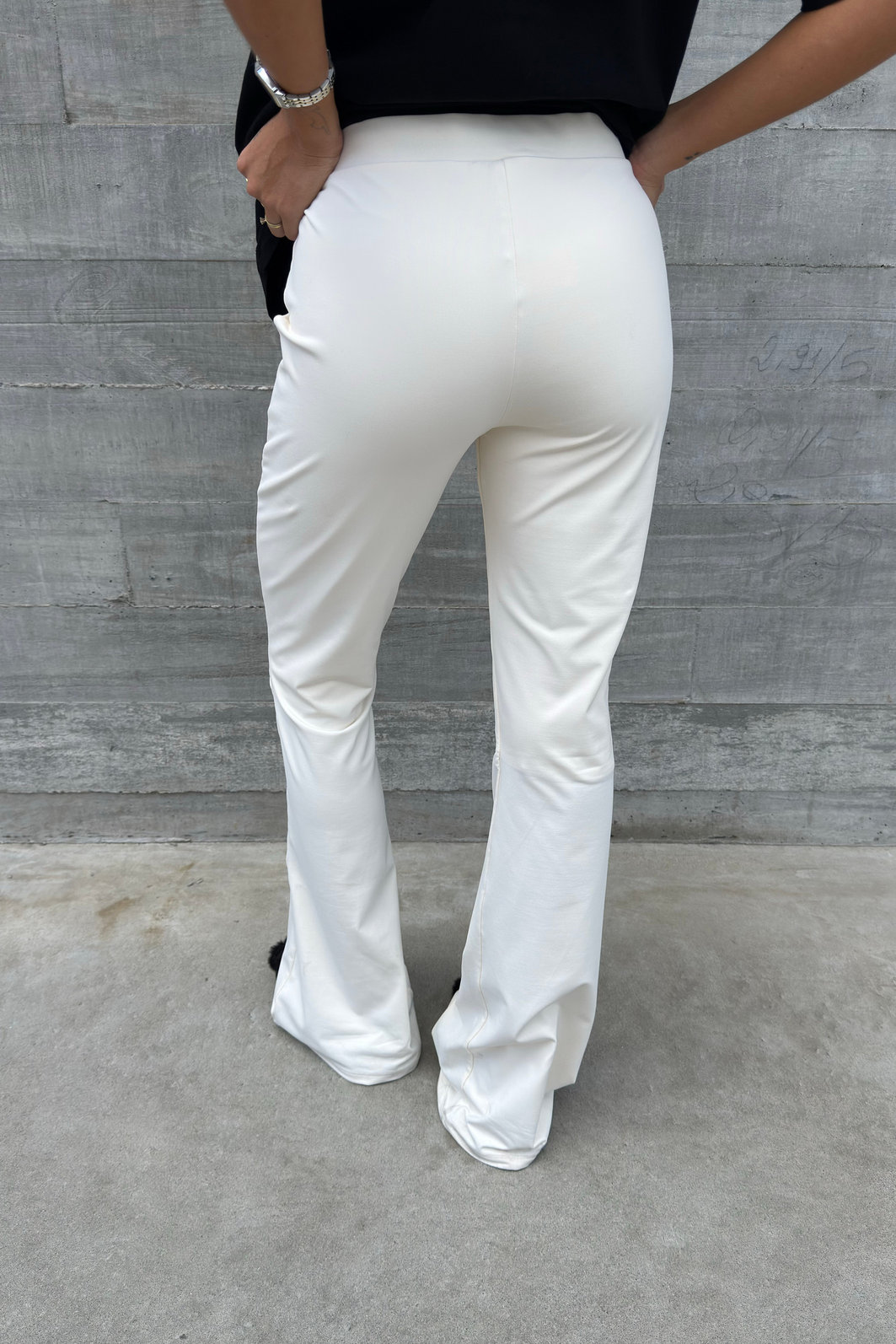 A calça flare aura foi pensada para entregar conforto e delicadeza. Ela veste com segurança, valoriza a cintura e desenha a silhueta com um caimento justo até os joelhos, abrindo suavemente na barra para criar um efeito alongado e elegante, no estilo calça bailarina. É a peça ideal para dias em que você precisa de liberdade de movimento sem abrir mão de estilo e acabamento impecável. na cor baunilha, a estética fica ainda mais sofisticada e atual, iluminando o look com leveza e intencionalidade. O tecido dela combina alta elasticidade com excelente recuperação, ou seja, acompanha o corpo sem deformar e não marca joelho com o uso. a estrutura do tecido oferece boa compressão e ajuste ao corpo, trazendo firmeza na medida certa e uma sensação confortável de sustentação. além disso, a respirabilidade e a rápida secagem tornam a aura uma escolha estratégica para rotinas dinâmicas, viagens e produções elaboradas.