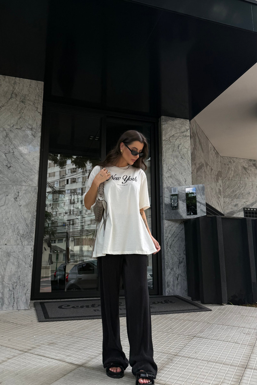 A calça claire tem uma proposta elegante, leve e atemporal. O plissado cria uma textura sofisticada e um movimento contínuo que acompanha o caminhar, trazendo um toque marcante sem excesso. Em preto, ela ganha ainda mais força visual e vira uma base estratégica para composições minimalistas ou produções mais refinadas, sempre com aquele ar polido que parece natural. A calça claire é perfeita para quem deseja compor looks com peças estilosas.
