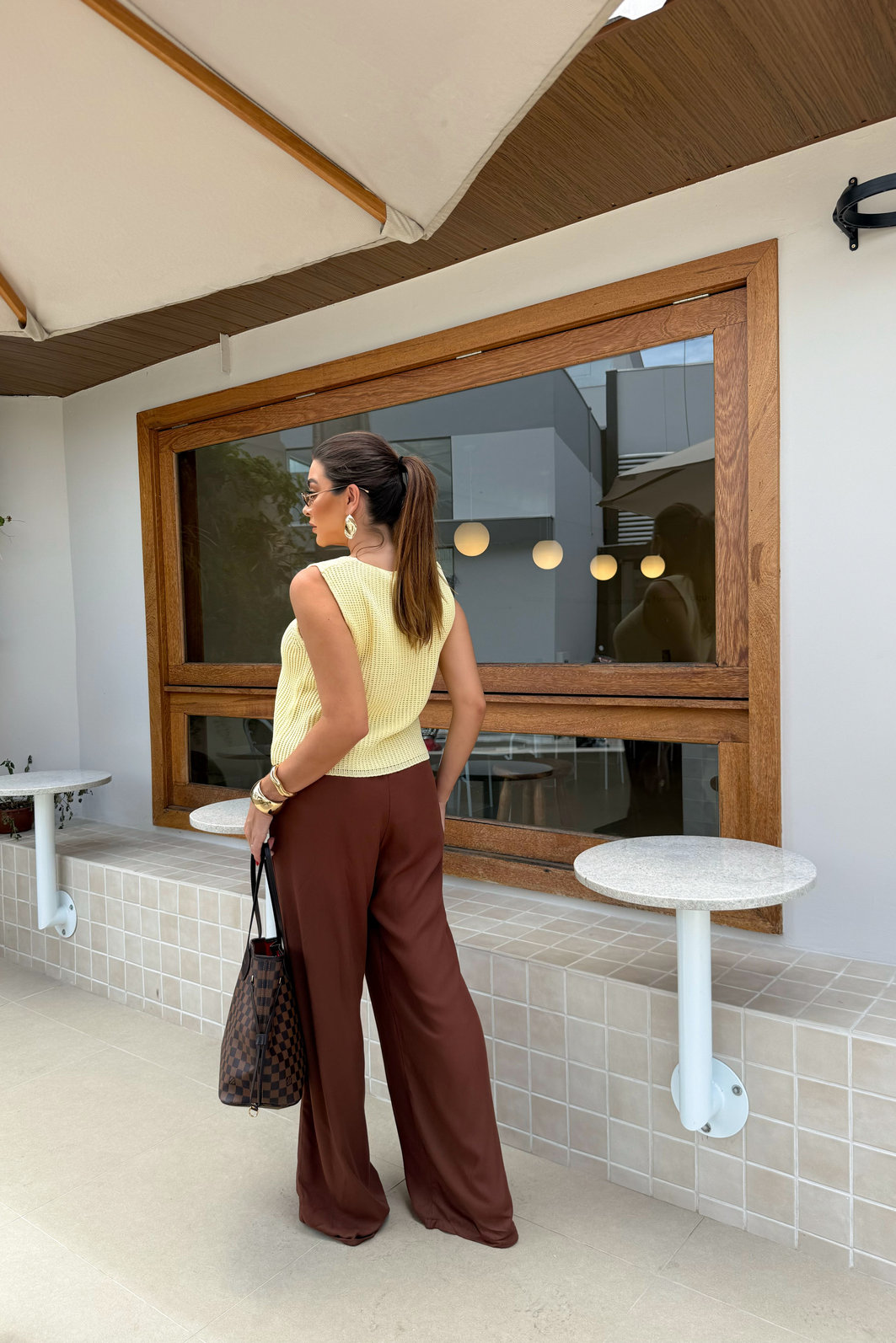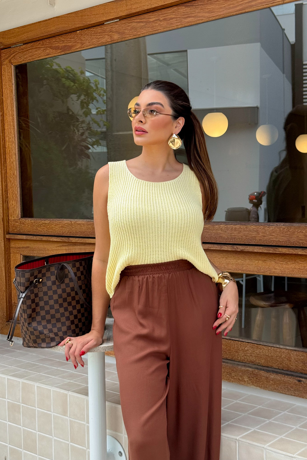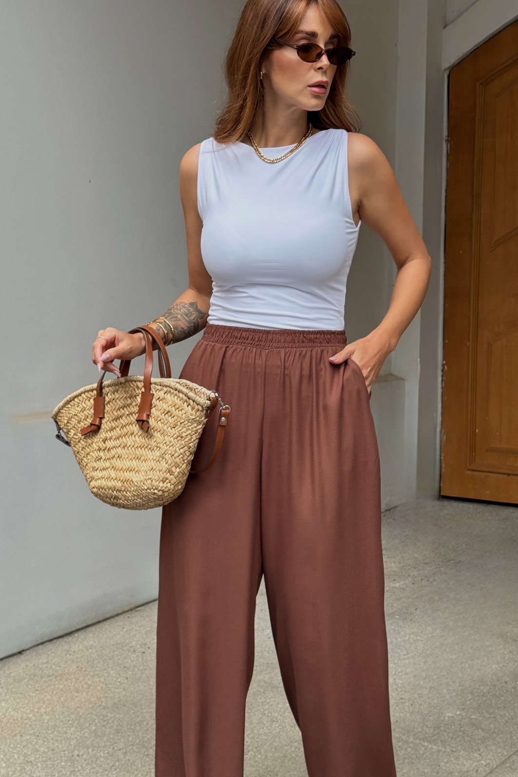 A Calça Lia é a escolha certeira pra quem ama conforto com estilo. Feita em tecido leve e com caimento soltinho, ela tem cintura alta com elástico que abraça o corpo sem apertar. Vai bem com regata, t-shirt divertida ou até um top mais arrumadinho. Perfeita pra levar na mala de verão ou usar nos dias de sol na cidade.