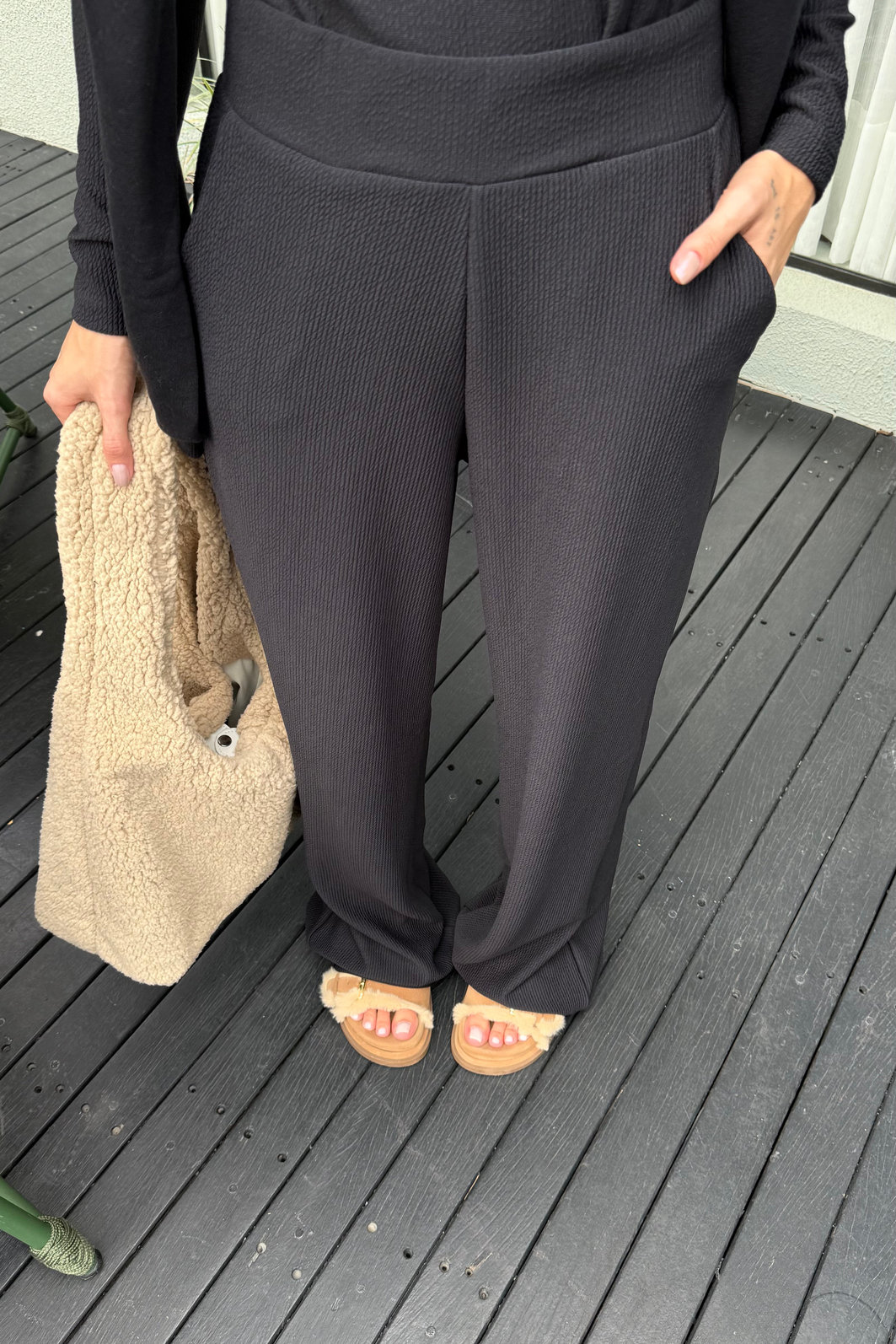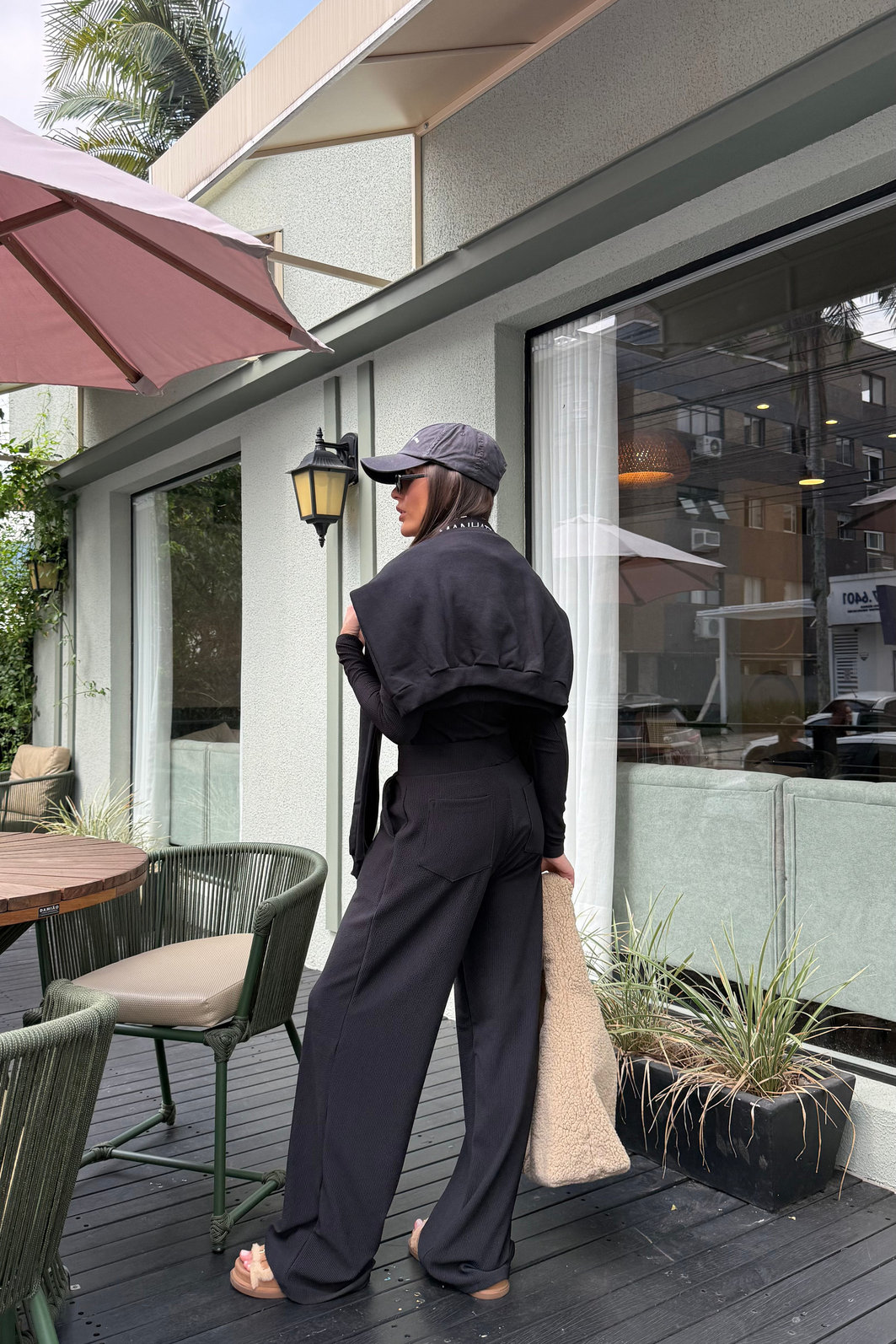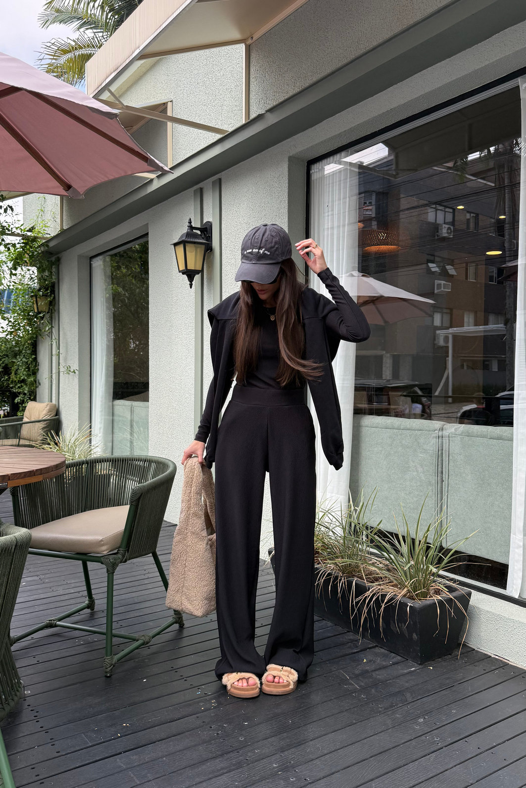 O conjunto comfy minimal preto foi feito para dias em que você precisa de conforto, mas quer manter o estilo basic. A malha texturizada traz sustentação e acabamento sofisticado, com um visual limpo a textura agrega riqueza o visual. A blusa ajustada equilibra a silhueta, enquanto a calça ampla entrega movimento e leveza, criando um conjunto fácil de usar e difícil de substituir na rotina.