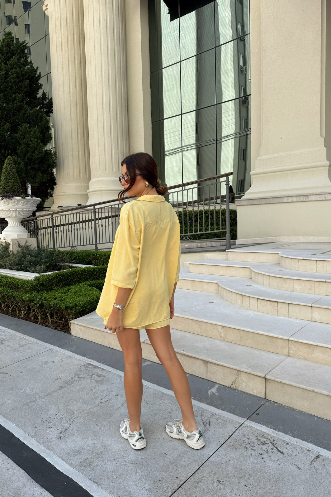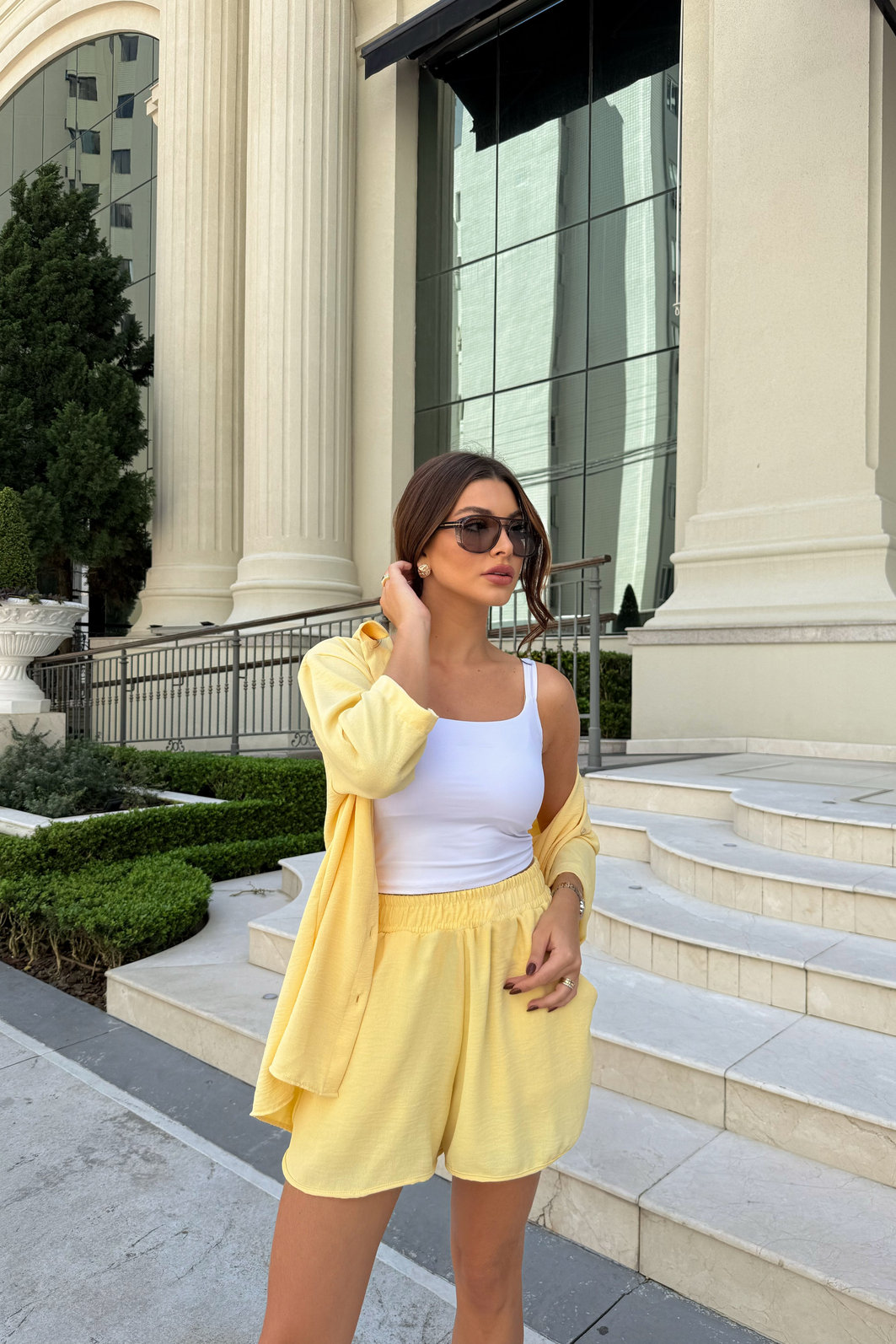 Um look leve, moderno e cheio de estilo para o dia a dia! Essa é definição perfeita pro nosso conjunto best seller em vendas! Confeccionado em tecido de crepe texturizado com caimento fluido e toque macio, o conjunto é composto por camisa com proposta oversized e short curto com cós elástico, garantindo conforto e liberdade. A camisa possui modelagem ampla, mangas 3/4, gola clássica, abertura frontal com botões e acabamento soltinho, perfeita para usar aberta com t-shirts, body, top ou regata por baixo, ou ainda, use ela fechada pra ter um look super estiloso e aesthetic. O short tem cintura alta com elástico embutido que proporciona ajuste confortável e bolsos funcionais que a gente ama. Esse conjunto é ideal para composições casuais, confortáveis e fresquinhos! Combine com rasteiras, tênis ou salto bloco para diferentes propostas. Um conjunto versátil que une praticidade e charme, pronto para acompanhar a mulher moderna em qualquer ocasião.