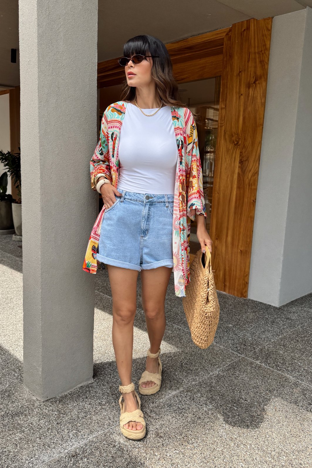 Kimono é sempre uma peça chave para compor looks despojados e fashionistas. O nosso kimono Anne é confeccionado em 100% viscose que deixa a peça bem leve e fluída. A modelagem é bem quadrada e ampla. Por ser tamanho único, ele veste desde o P até o GG de forma bem confortável e mantendo a proposta de uma 3ª peça.