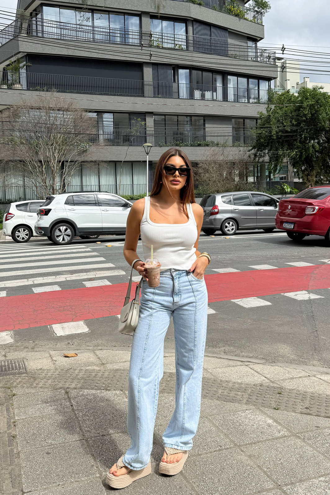 A Regata Carol é uma peça certeira para montar produções práticas e modernas. Confeccionada em ribana canelada 2x2 em algodão bem macio, ela possui textura encorpada e elasticidade ideal que veste perfeitamente no corpo. o Detalhe do decote quadrado destaca o colo na medida certa.