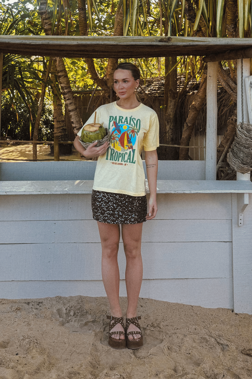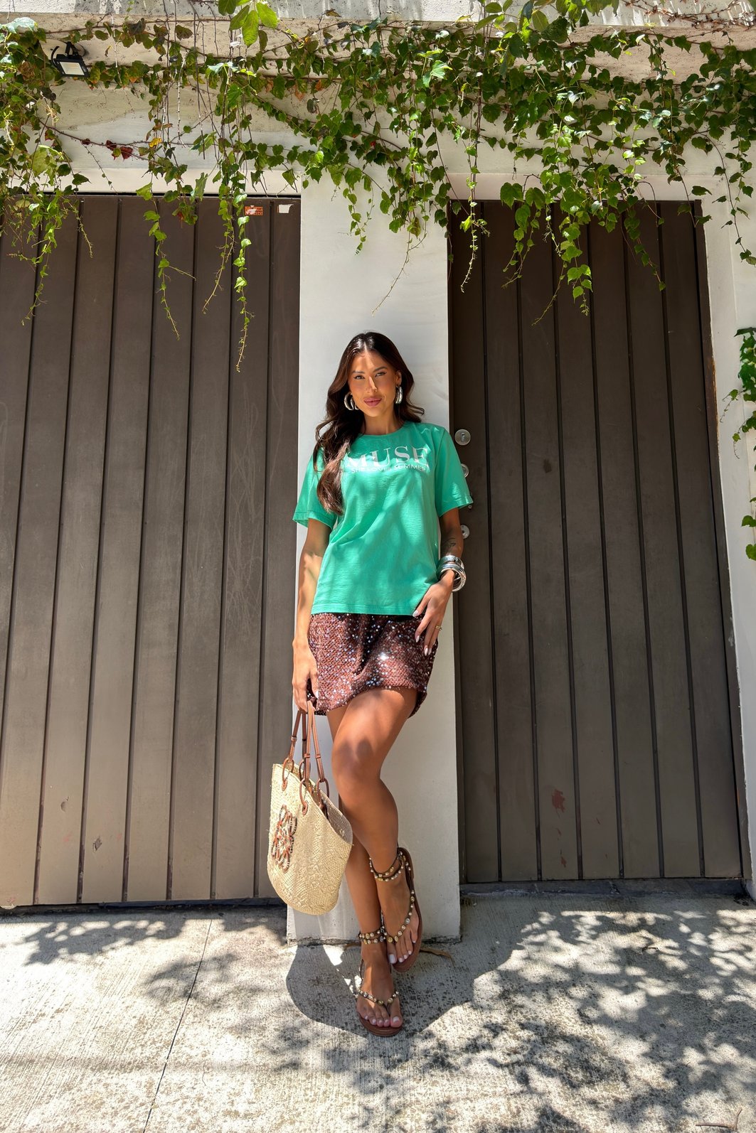 Cheia de estilo e brilho na medida certa, a saia curta Handmade é aquela peça que transforma qualquer look. Confeccionada em malha com textura de tricot e paetês aplicados, ela une conforto e sofisticação em um visual moderno e marcante. O efeito artesanal da textura traz um toque único, enquanto o brilho sutil dos paetês adiciona glamour com elegância. Ideal para compor produções noturnas ou elevar combinações casuais com um toque fashion e cheio de personalidade.