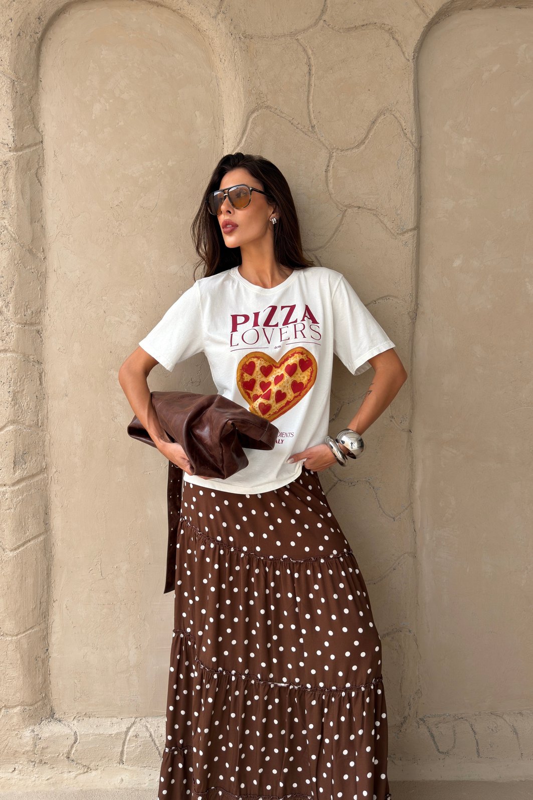 Porque é leve, feminina e cheia de movimento. A Saia Longa Poá Blair une tecido fresco, babados que valorizam o caimento e uma modelagem confortável, criando um visual fluido e atual. É o tipo de peça que traz charme imediato ao look e funciona em diferentes propostas, do casual ao mais elaborado.