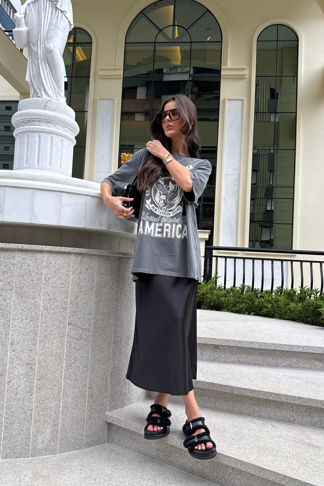 A saia marissa é uma peça chave e estratégica de se ter no guarda roupa, pois além de ser uma peça versátil que dá para montar diversas composições, ela eleva a produção sem esforço e entrega uma imagem polida, feminina e atual, sem perder conforto e estilo. Confeccionada em cetim, ela tem superfície lisa e toque sedoso, com brilho acetinado que valoriza a peça de forma refinada. o corte no viés faz diferença no caimento: a saia acompanha o corpo com fluidez, criando uma linha alongada e elegante. já o cós com elástico embutido garante ajuste confortável na cintura, mantendo a sensação de cintura bem marcada, sem apertar e sem perder a leveza. Uma peça que transita facilmente entre produções elegantes e combinações mais contemporâneas.