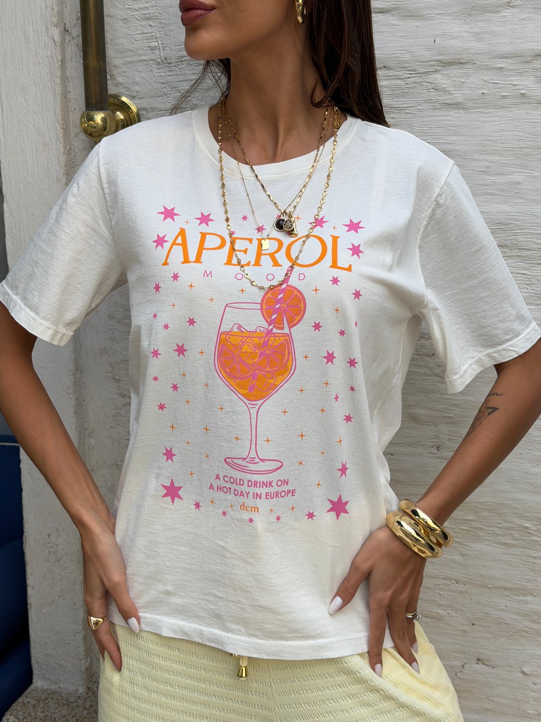 Com um toque leve e cheio de personalidade, a t-shirt Aperol Mood é perfeita para quem ama unir conforto e estilo em um visual descontraído e moderno. Confeccionada em meia malha 100% algodão, ela oferece toque macio e caimento perfeito, ideal para compor looks atuais sem esforço. A estampa com o drink de Aperol traz um mood vibrante e refrescante, remetendo a momentos de diversão e leveza. Versátil e estilosa, combina facilmente com jeans, shorts ou saias, acrescentando uma dose extra de charme e espontaneidade às produções do dia a dia.