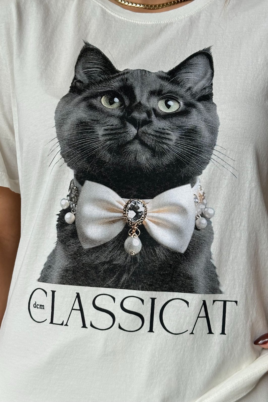 Com toque descontraído e cheio de charme, a t-shirt estonada Classicat é perfeita para quem ama unir conforto e personalidade no look. Confeccionada em meia malha 100% algodão, ela tem toque macio, caimento leve e muito conforto. A estampa traz um ar divertido e estiloso, perfeita para combinar com jeans, alfaiataria leve ou saias ♥
