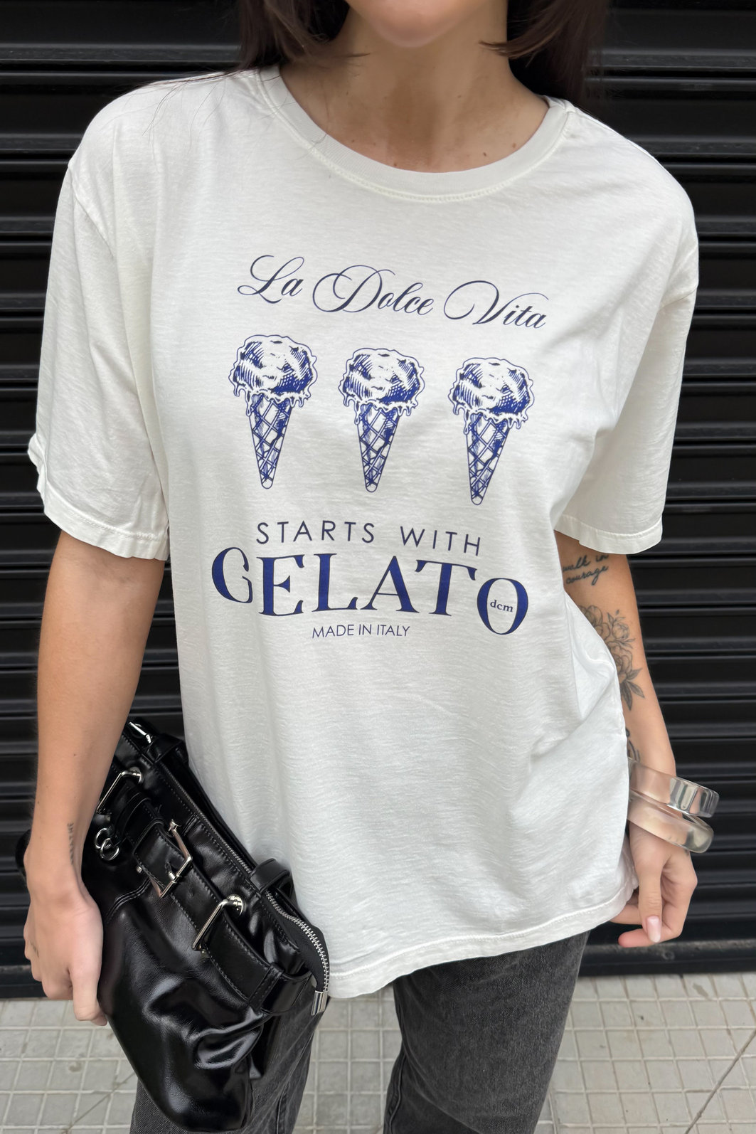Doce, leve e cheia de estilo! A t-shirt estonada Gelato é aquela peça que une conforto, atitude e um visual cheio de personalidade. Confeccionada em meia malha 100% algodão com lavagem estonada, ela tem toque macio e caimento soltinho que faz toda a diferença. A estampa em tom de azul sobrepondo o off white traz um toque vibrante e divertido, perfeita pra quem ama um mood leve e com personalidade. Combine com jeans, shorts ou saias para um look casual e cheio de charme, ideal para curtir o dia com estilo e uma pitada de doçura.