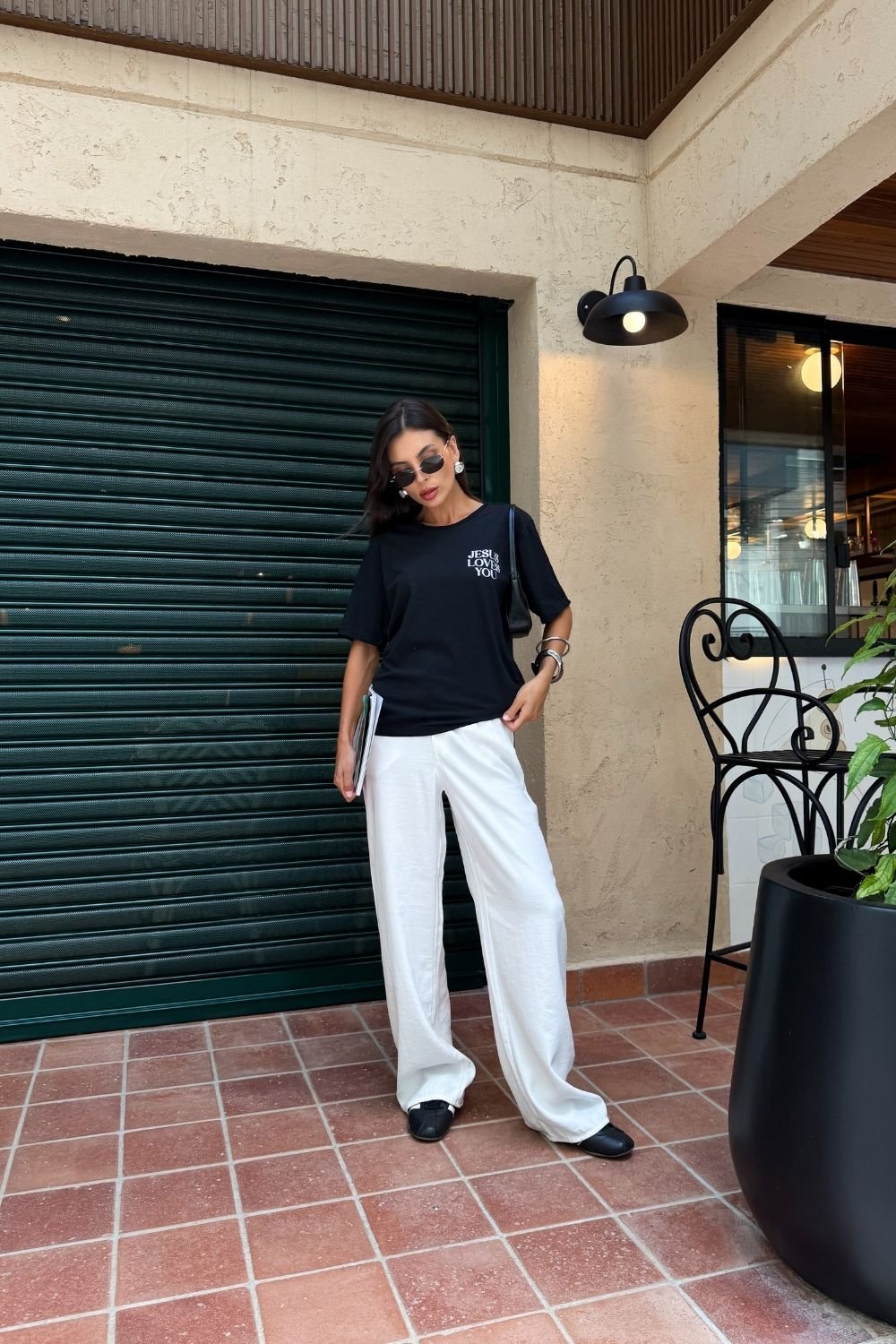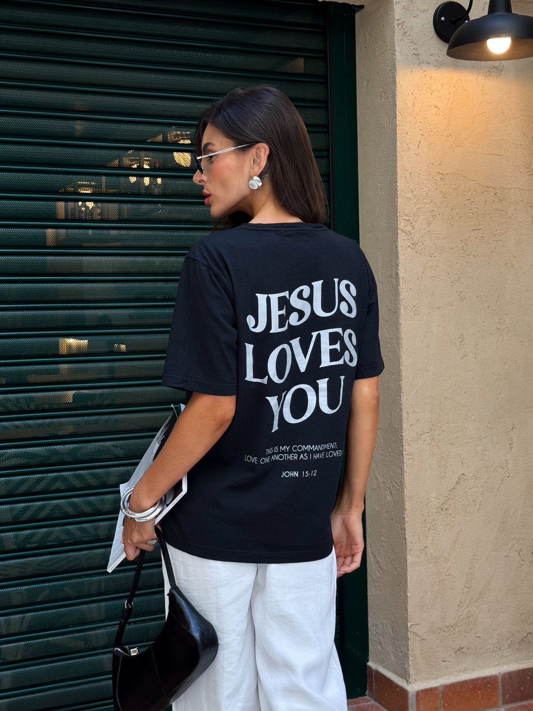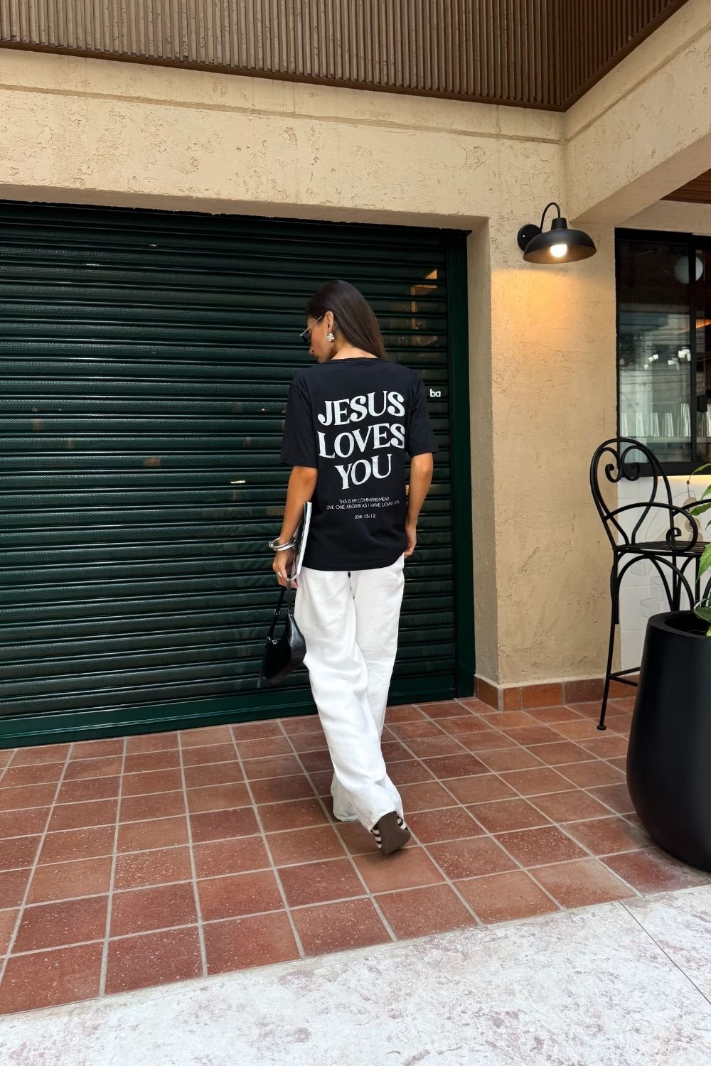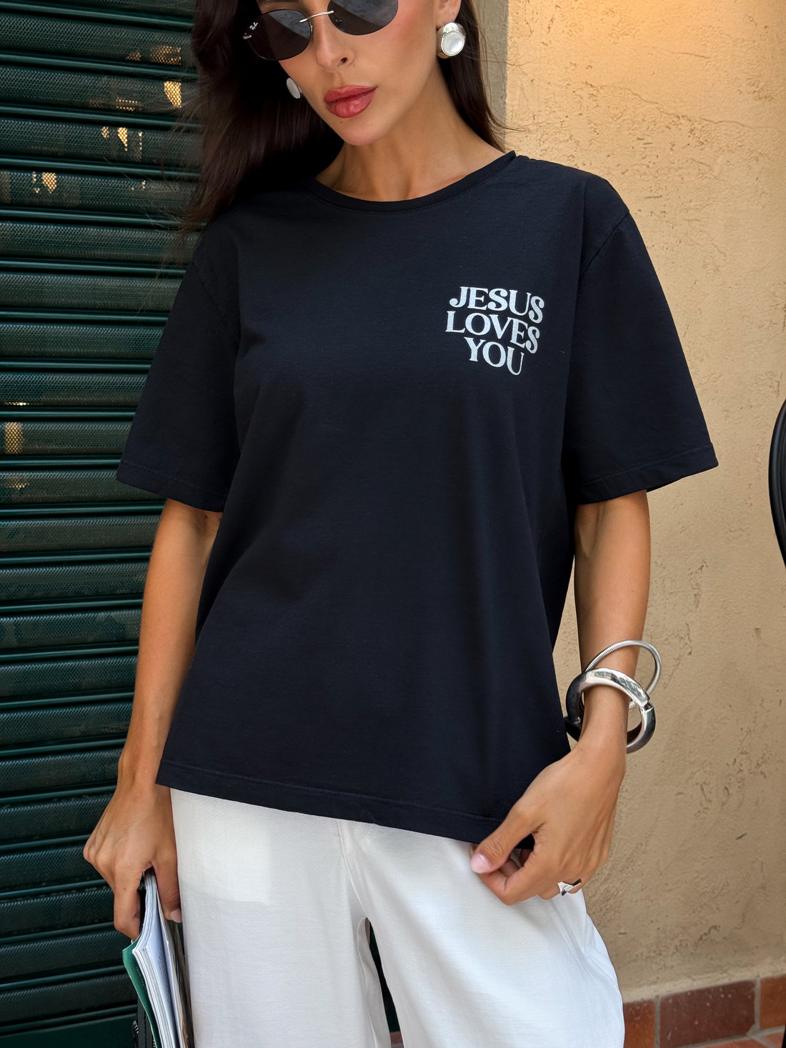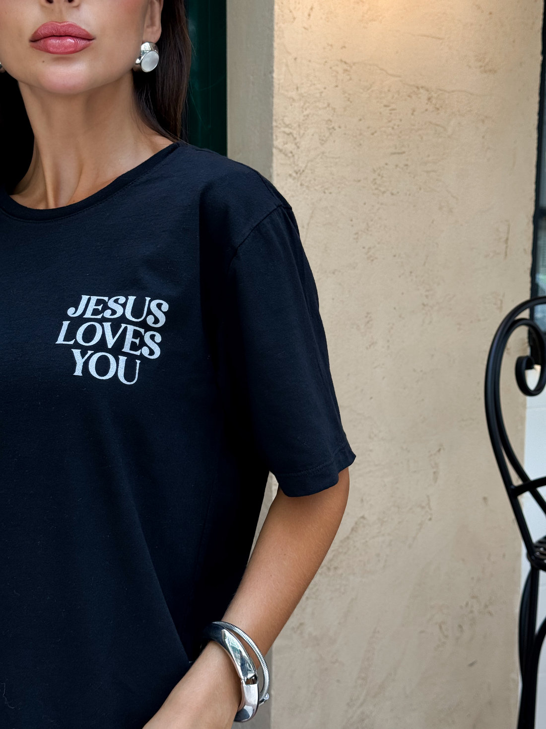 A t-shirt estonada Jesus loves preta da Dolce-me é confeccionada em malha pt pré-encolhida 100% algodão, com estampa localizada frontal e traseira em silk screen com tinta perolizada, o que garante mais durabilidade e definição ao desenho. O acabamento estonado traz um visual moderno e levemente vintage, deixando a peça ainda mais especial. A modelagem é tradicional, com caimento confortável que não fica nem justa nem muito solta ao corpo, ideal para quem quer praticidade e estilo no dia a dia. Funciona tanto para produções casuais quanto para composições mais elaboradas, combinando facilmente com jeans, alfaiataria ou shorts. É aquela peça que entra no guarda-roupa e realmente é usada.
