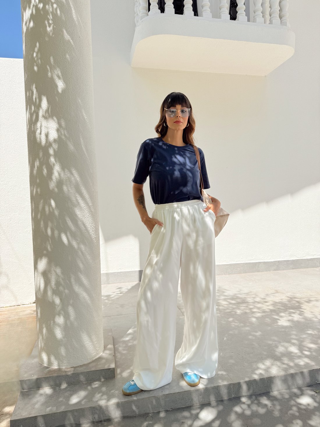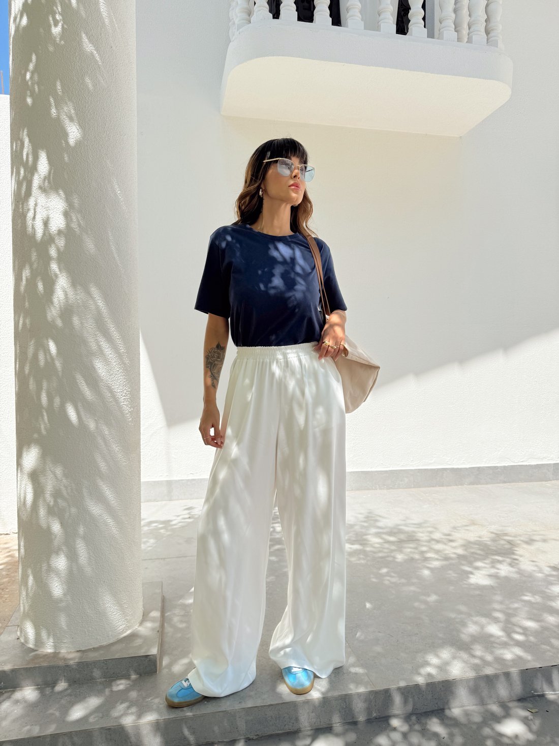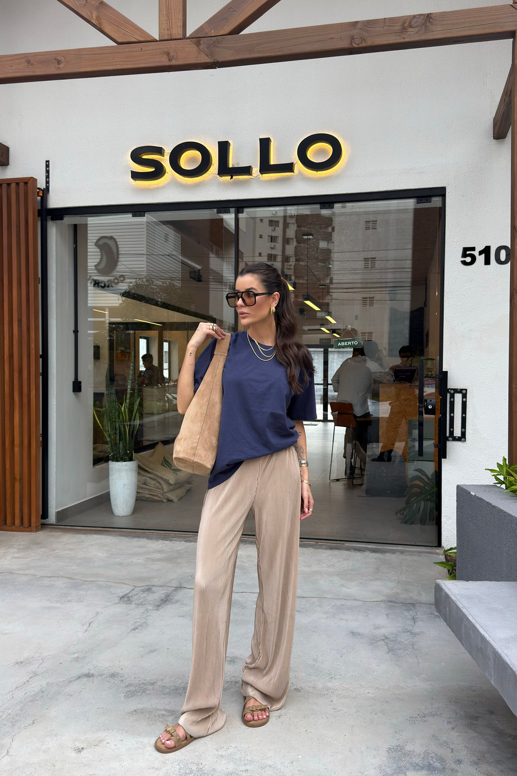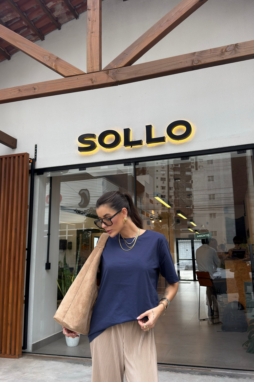 - Modelagem: mais soltinha no corpo, shape reto, ombro levemente deslocado e manga curta