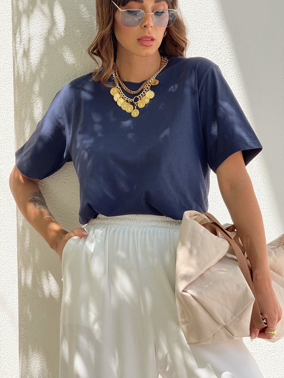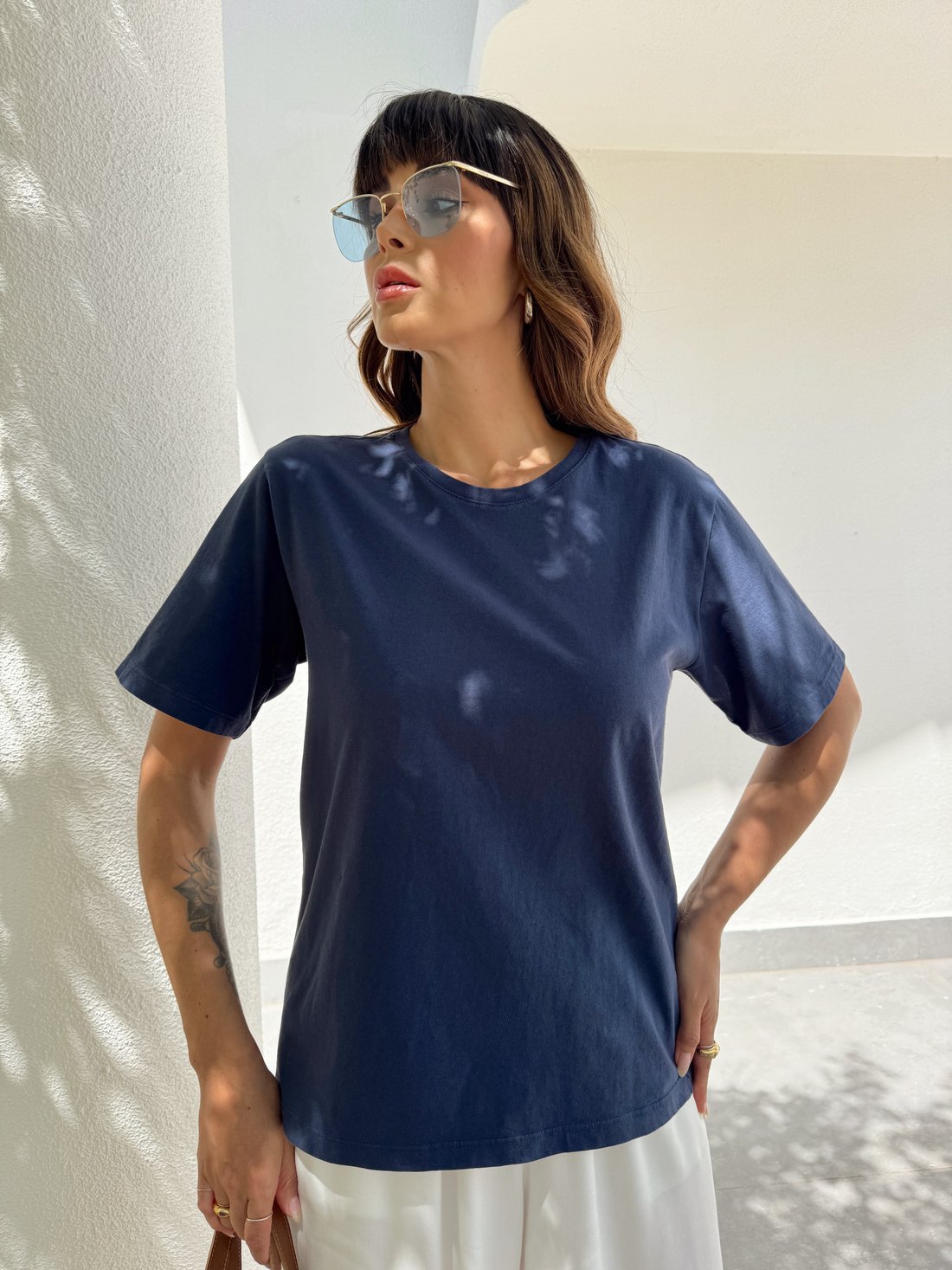 Básica, mas nada sem graça. A t-shirt lisa azul marinho é aquele item essencial que combina com tudo e nunca sai de moda. Com modelagem tradicional e caimento confortável, ela é perfeita para compor desde produções casuais até sobreposições mais estilosas. O tom sóbrio e elegante do azul marinho traz um ar moderno e versátil, ideal pra quem curte praticidade com estilo no dia a dia.