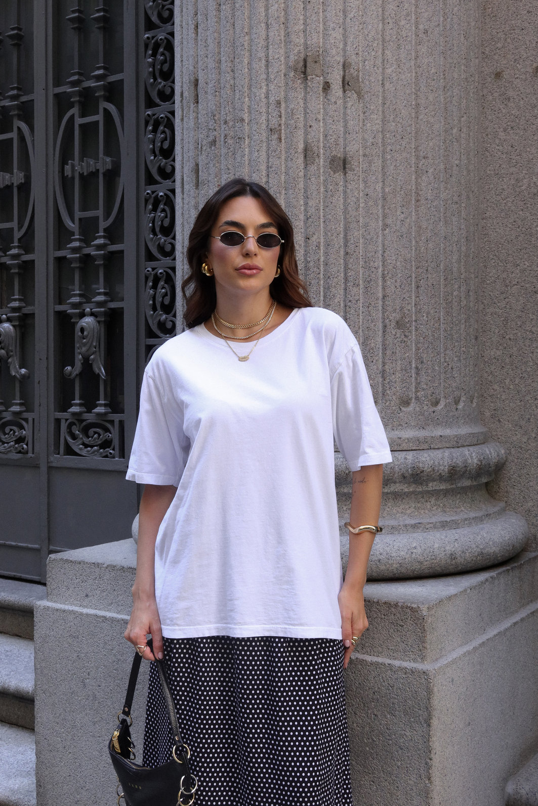- Modelagem: mais soltinha no corpo, shape reto, ombro levemente deslocado e manga curta