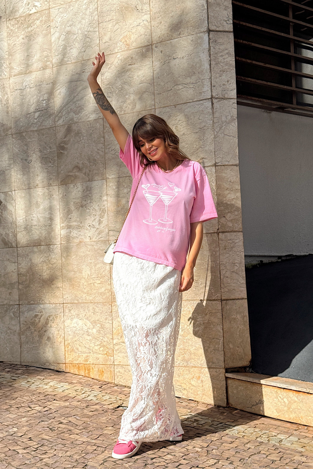 Se você está procurando uma t-shirt confortável, feminina e com uma estampa divertida, essa é a peça certa. A T-shirt Love Martini da Dolce-me é confeccionada em malha PT pré-encolhida 100% algodão, com estampa localizada frontal em silk screen feita em estamparia, o que garante qualidade superior, durabilidade e melhor acabamento da arte. A cor rosa chiclete traz um visual leve e moderno, deixando a peça ainda mais especial para o dia a dia.