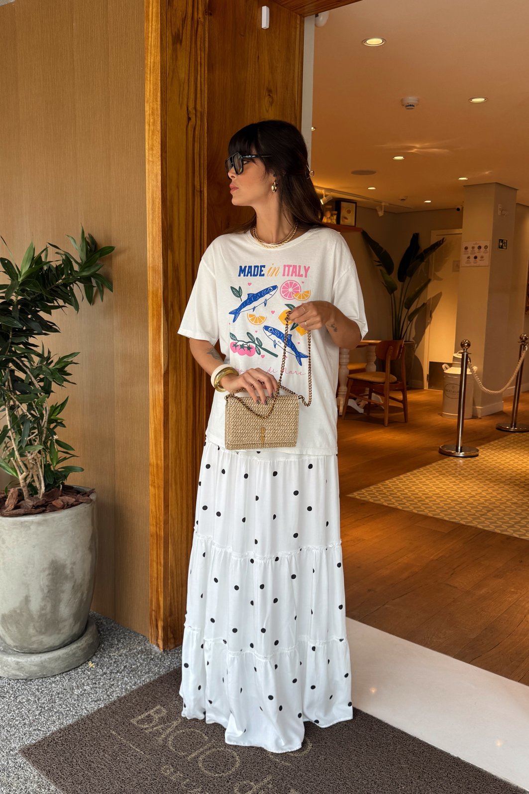Com o charme europeu, a t-shirt estonada Made in Italy é a escolha ideal para quem ama peças com estilo e personalidade. Confeccionada em meia malha 100% algodão, possui toque macio, caimento leve e muito conforto. A estampa com elementos da Itália traz um toque sofisticado e cultural, remetendo ao lifestyle italiano e à beleza mediterrânea. Versátil e moderna, é perfeita para compor produções casuais com um toque refinado e atemporal.