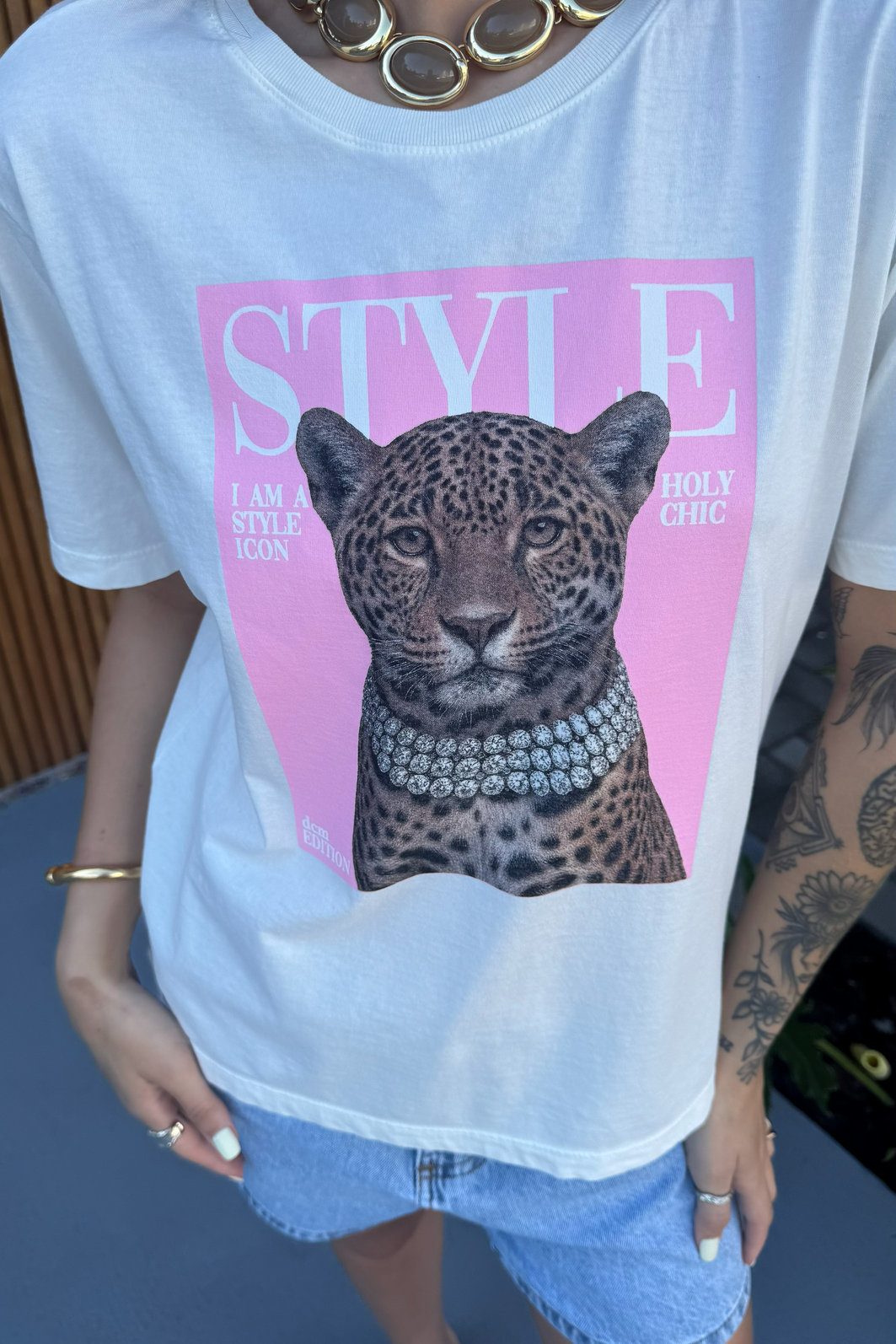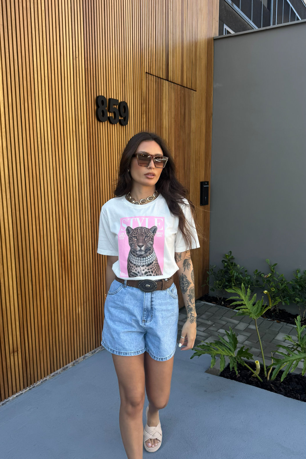 Cheia de personalidade e estilo, a t-shirt estonada Onça Style Icon traz uma estampa marcante de onça que adiciona charme e atitude à peça. Confeccionada em meia malha 100% algodão, ela garante toque macio e caimento soltinho. É perfeita para criar looks versáteis com jeans, shorts, saias ou alfaiataria. Uma peça que une conforto e estilo, pronta pra destacar sua personalidade!