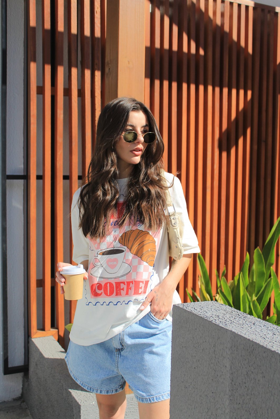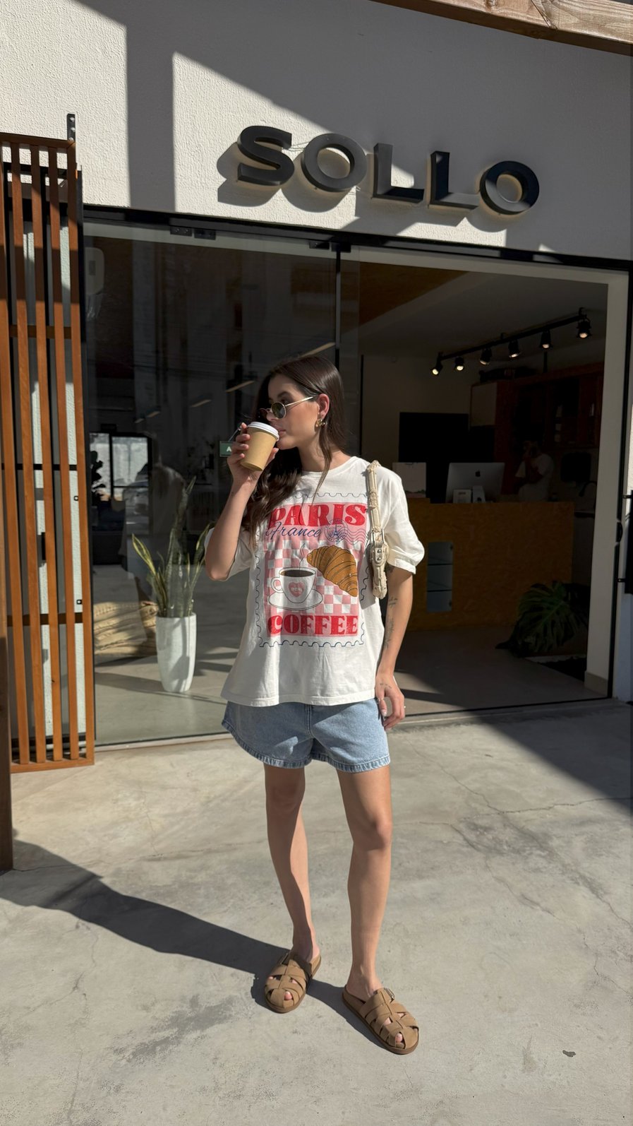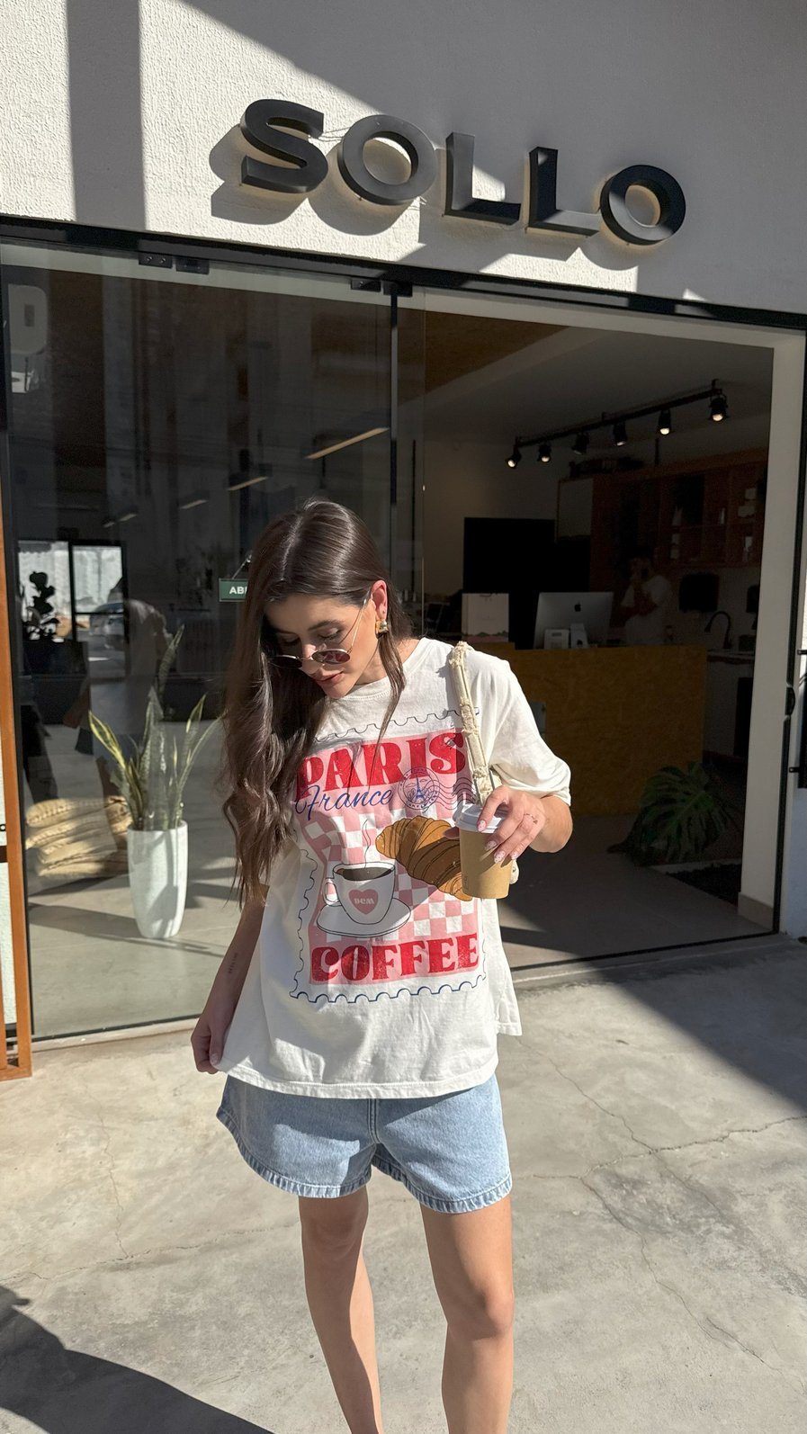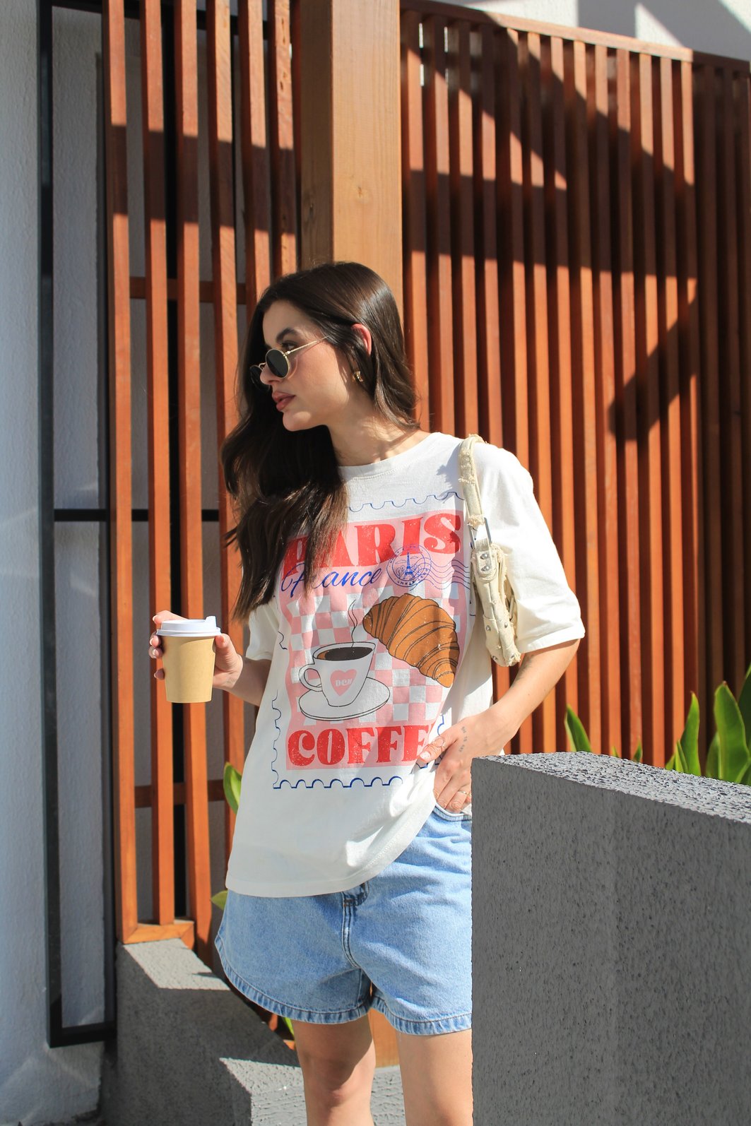 Com vibe charmosa e clima de cafeteria parisiense, a t-shirt oversized Paris Coffee traz uma estampa fofa e retrô com croissant, xícara de café e padronagem em xadrez rosa. O fundo off white equilibra o visual com leveza, enquanto o shape amplo garante conforto e muito estilo. Ideal pra quem ama moda casual com um toque doce e francês!
