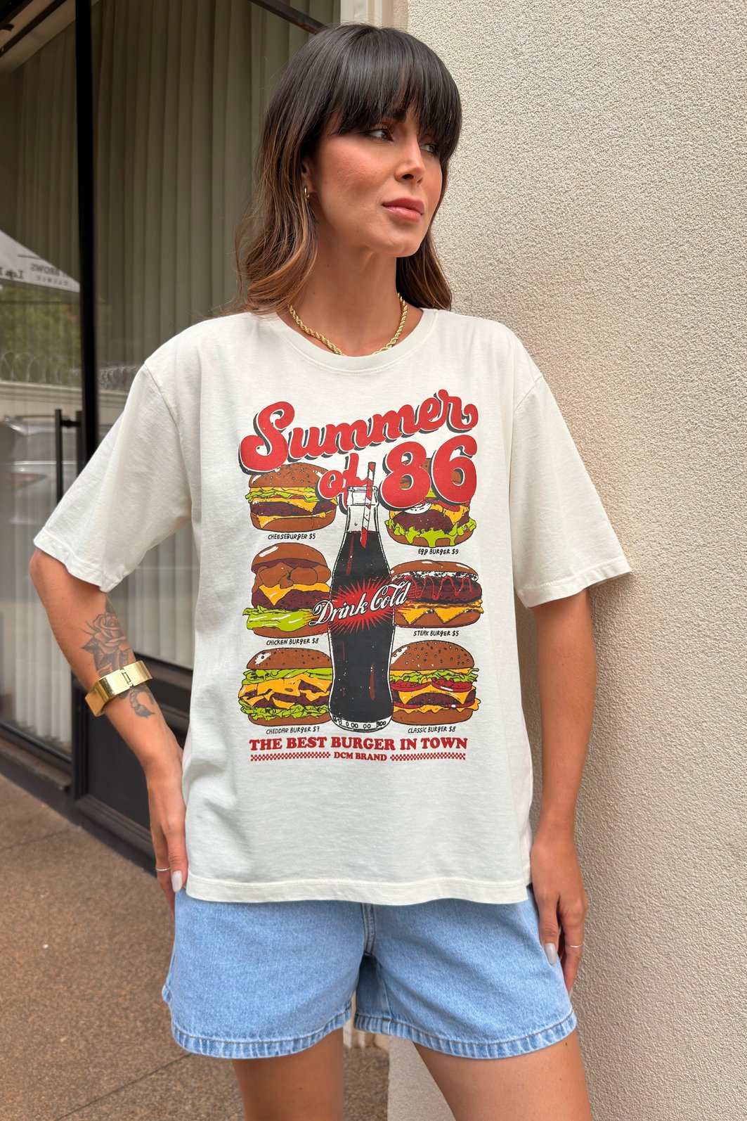 Com um toque divertido e cheio de personalidade, a t-shirt Summer Hamburguer é perfeita para quem gosta de unir conforto e estilo em um visual descomplicado. Confeccionada em meia malha 100% algodão, ela oferece toque macio e caimento perfeito, ideal para criar produções modernas sem esforço. A estampa de hambúrguer, com traços que remetem ao vintage, adiciona um ar leve e descolado à peça, trazendo aquela vibe divertida que deixa o look mais interessante. Versátil e estilosa, combina facilmente com jeans, shorts ou saias, garantindo um mood casual cheio de charme para o dia a dia.