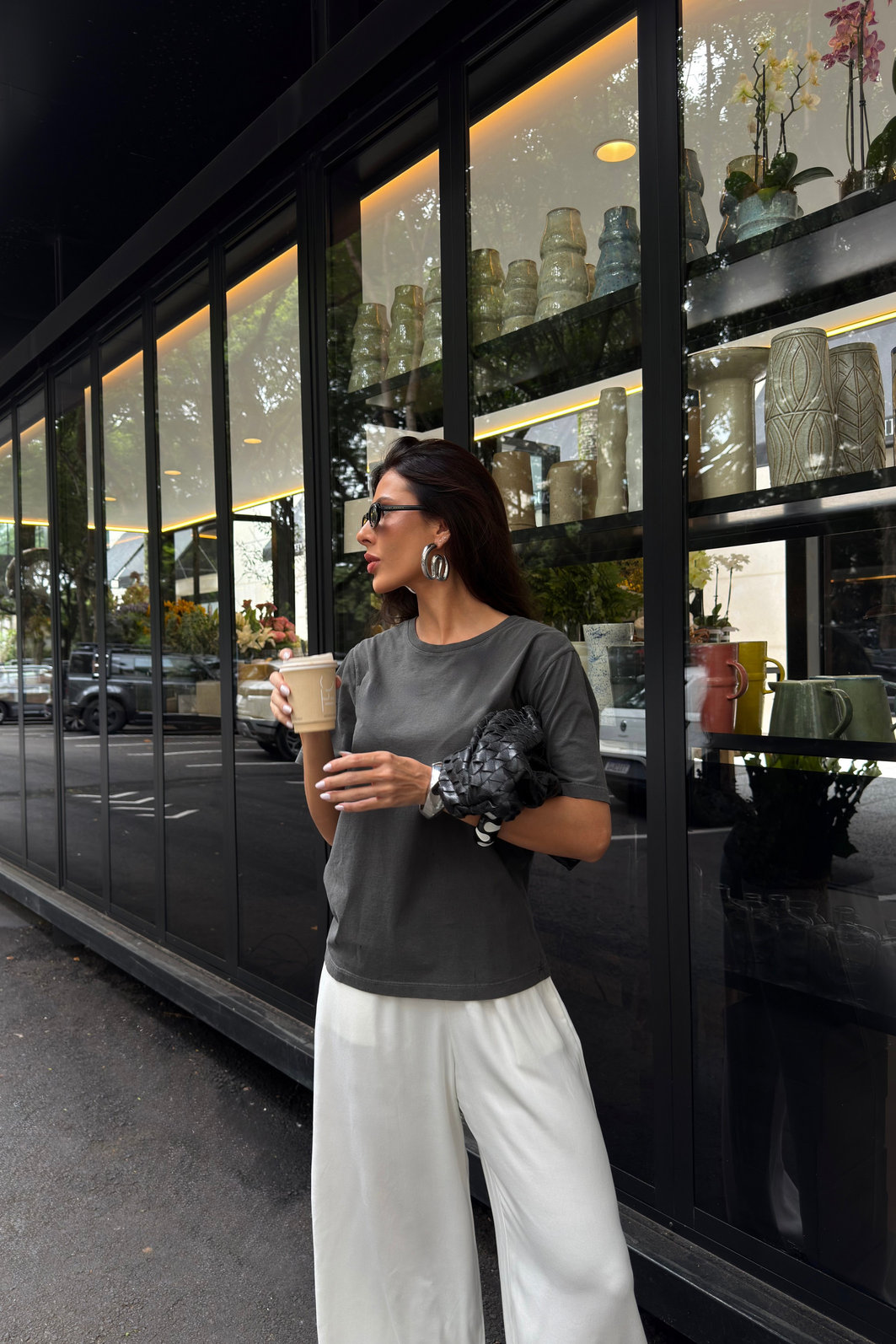 A modelagem é tradicional, com caimento confortável no corpo, ideal para quem quer praticidade e estilo no dia a dia. Funciona tanto para looks casuais quanto para produções mais descoladas, combinando facilmente com jeans, shorts, saias ou calças de cintura alta. É aquela t-shirt fácil de usar, que entra no guarda-roupa e sempre funciona.