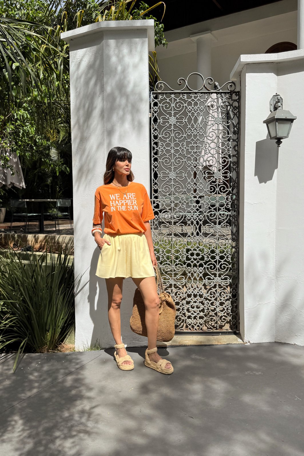 Minimalista e cheia de estilo! A t-shirt estonada We Are Happier é a peça ideal para quem valoriza o básico cheio de personalidade. Confeccionada em meia malha 100% algodão com lavagem estonada, possui toque macio e caimento soltinho. A estampa com lettering traz um ar urbano sofisticado, perfeita para compor produções casuais e atuais. Combine com jeans, shorts ou peças de alfaiataria para criar looks versáteis e cheios de atitude, uma t-shirt atemporal que traduz muito estilo.