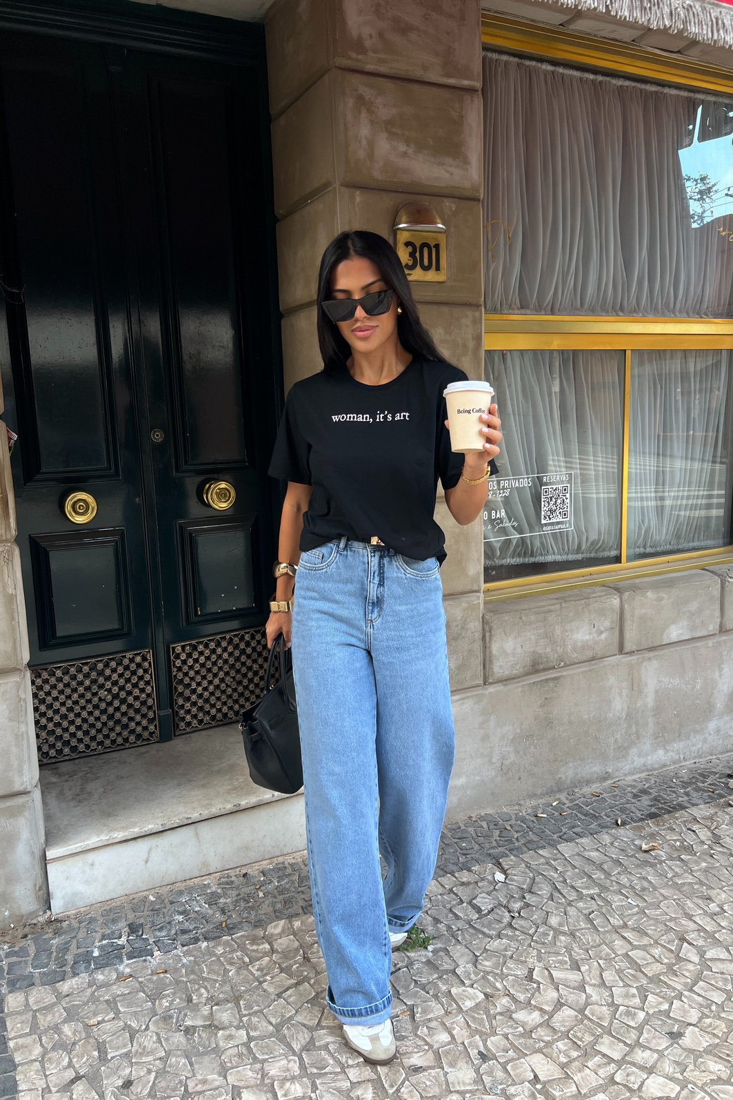 A t-shirt estonada woman art preta da dolce-me é confeccionada em malha pt pré-encolhida 100% algodão, com estampa localizada frontal em silk screen, o que garante mais durabilidade e definição ao desenho. O acabamento estonado traz um visual moderno e levemente vintage, deixando a peça ainda mais especial. a modelagem é clássica, com caimento confortável, ideal para quem quer praticidade e estilo no dia a dia. Funciona tanto para produções casuais quanto para composições mais elaboradas, combinando facilmente com jeans, alfaiataria ou shorts. É aquela peça que entra no guarda-roupa e realmente é usada.