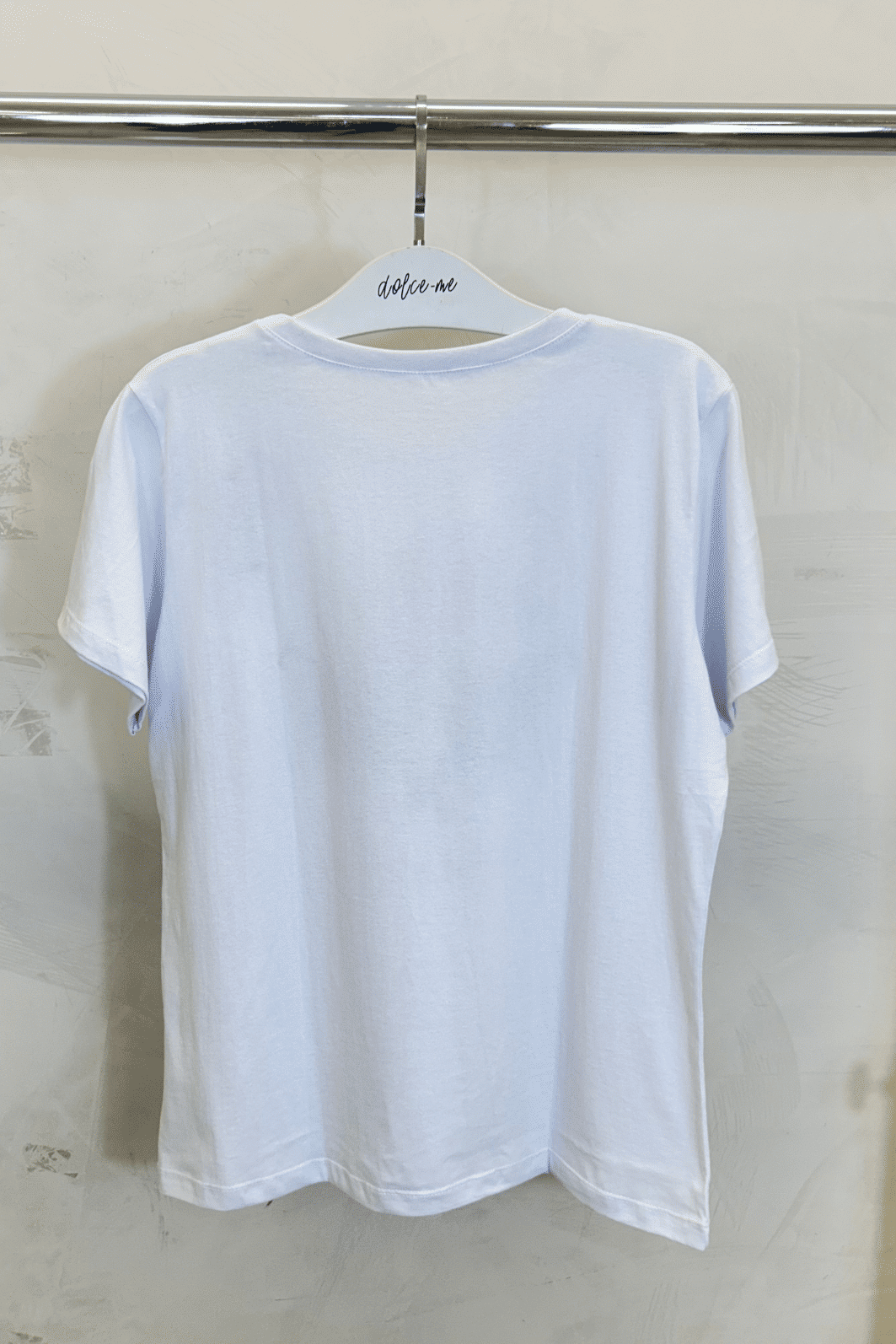 T-shirt em meia malha 100% algodão com mangas curtas, com modelagem reta, gola redonda em ribana canelada, estampa frontal localizada com técnica silk screen que não racha ou craquela.