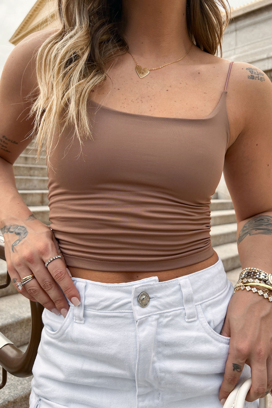 Top confeccionado em poliamida com elastano com toque bem macio e geladinho na pele. Ele também é todo duplo pra te deixar segura e ainda conta com o detalhe da alça estilo roliço que é ótima para dar a sustentação necessária que você precisa para se sentir confortável.