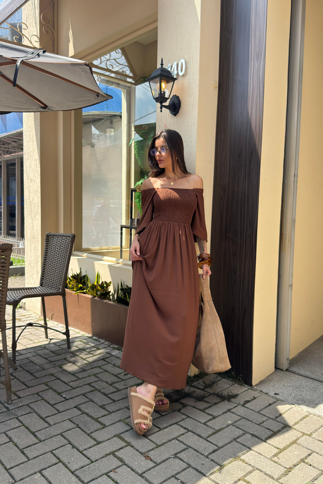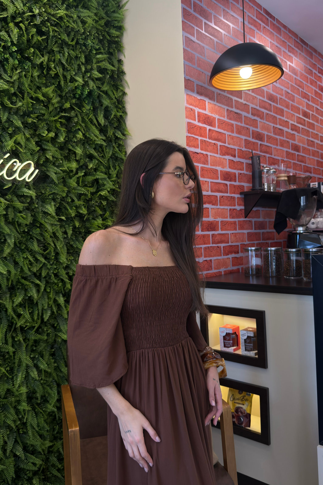 O vestido midi dreams foi pensado para quem quer um vestido que marque a cintura de um jeito confortável e deixe o corpo leve, sem ficar justo e marcado demais. O lastex no busto cria aquele encaixe bonito que acompanha você o dia inteiro, e a saia mais solta traz movimento e uma feminilidade tranquila, daquela básica e essencial de se ter no guarda roupa. É uma peça que entrega presença com delicadeza e fica pronta para acompanhar do cotidiano a ocasiões mais arrumadas.